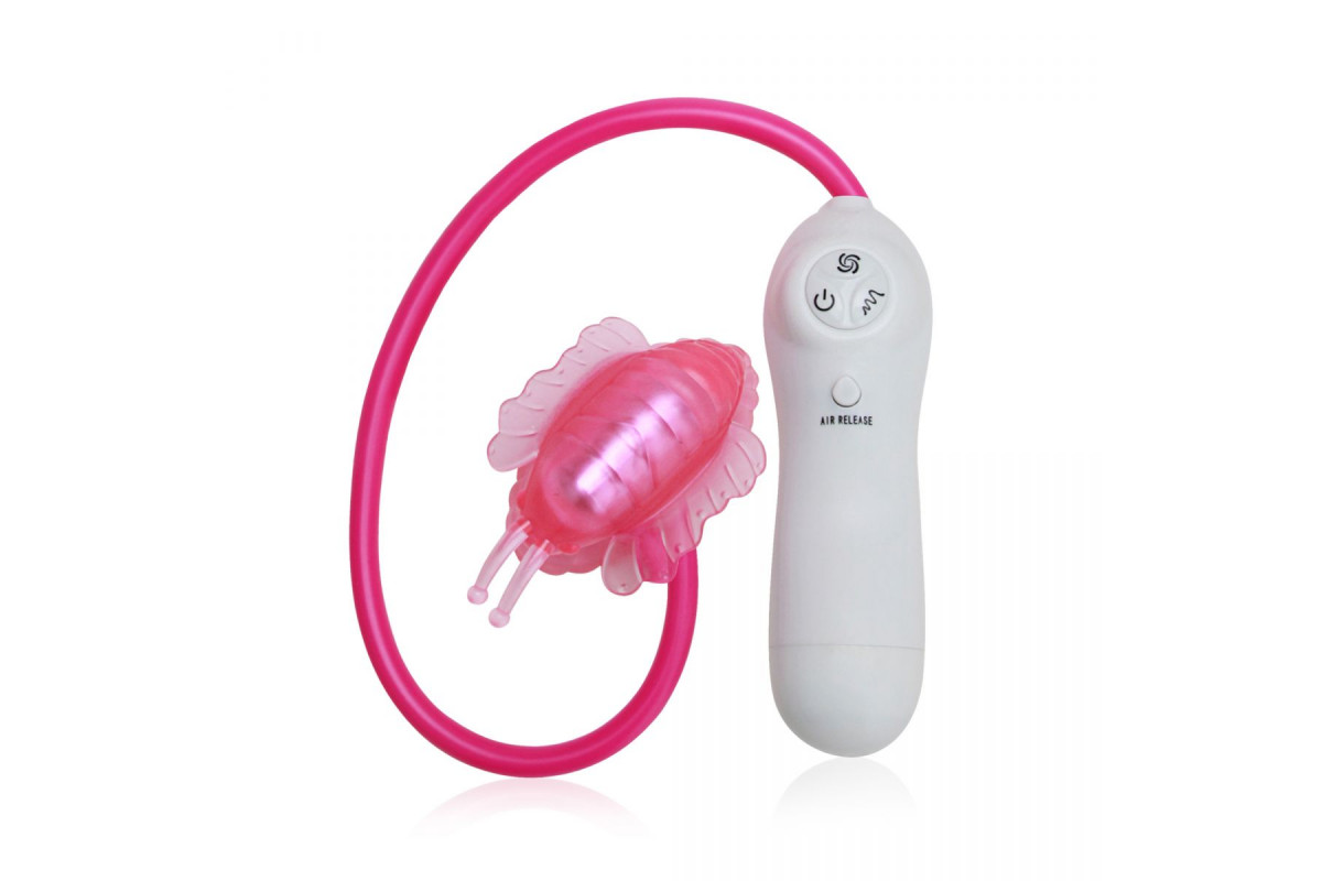 Розовая клиторальная помпа-бабочка с 7 функциями вибрации – удовольствие нового уровня