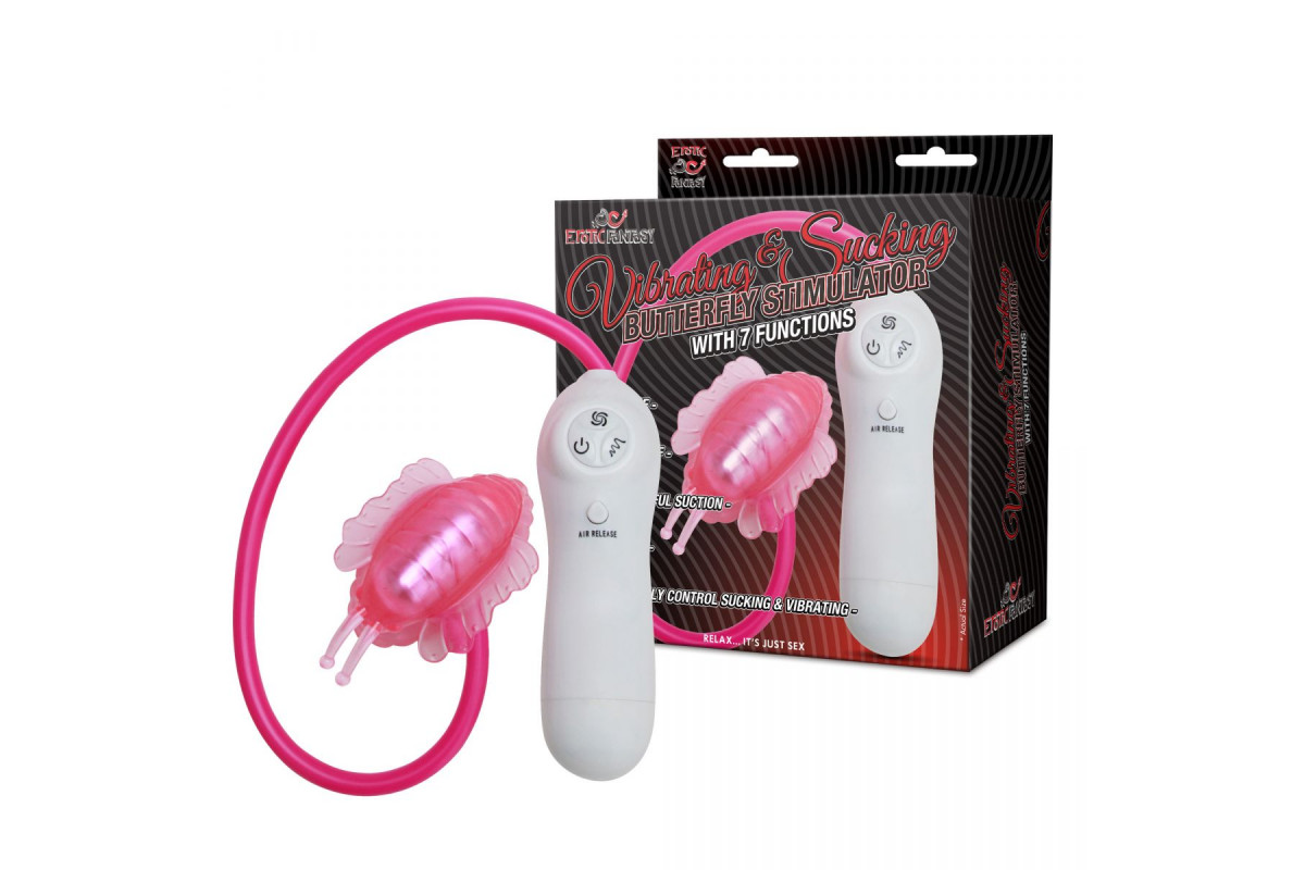 Добавьте в свою коллекцию удовольствий розовую клиторальную помпу-бабочку с 7 функциями вибрации и откройте для себя новые волнующие ощущения!
