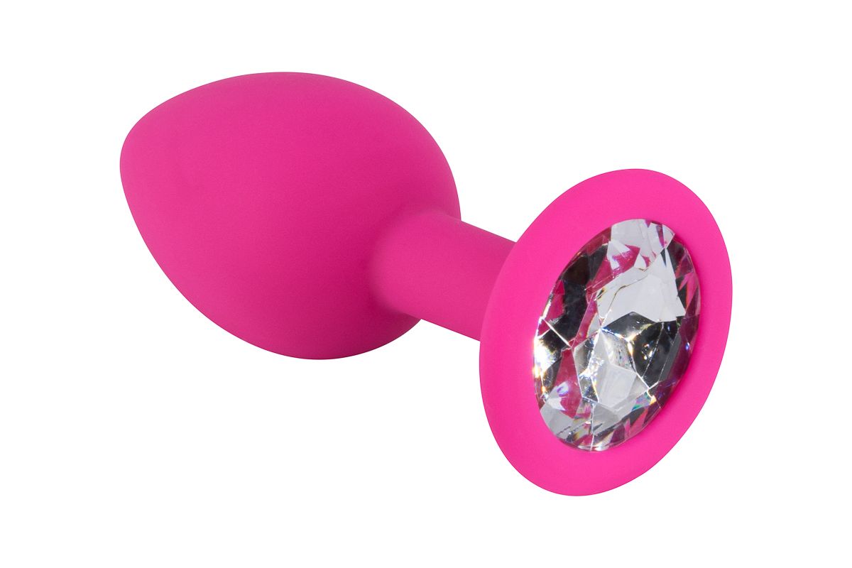 Розовая малая силиконовая пробка с прозрачным кристаллом