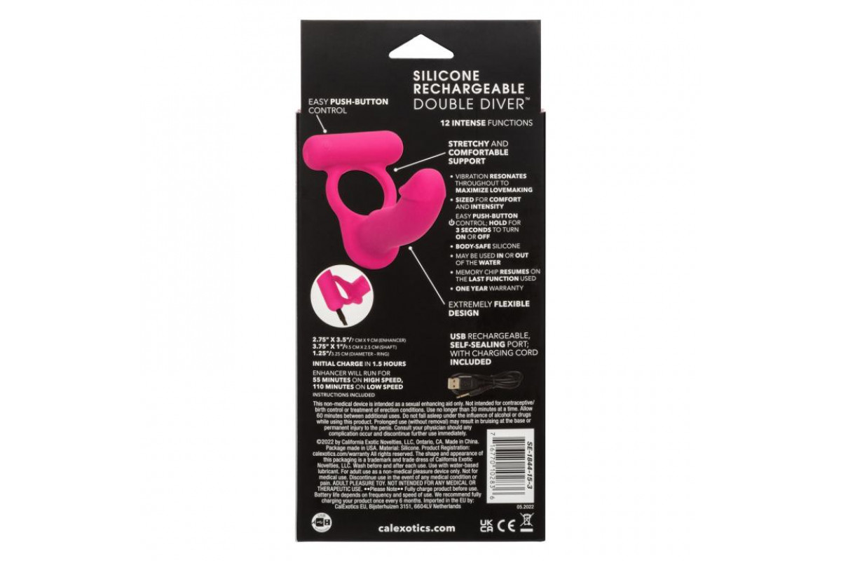 Испытайте новые ощущения с розовой насадкой для двойного проникновения Silicone Rechargeable Double Diver и внесите яркие краски в свою интимную жизнь!