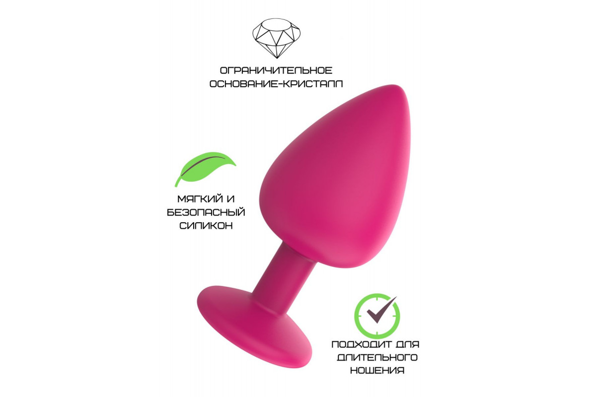 Розовая средняя силиконовая пробка с прозрачным кристаллом