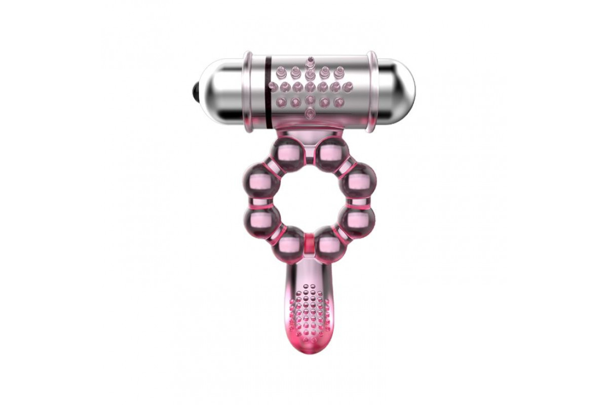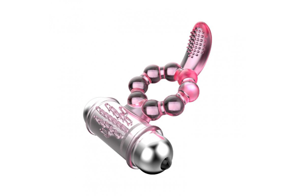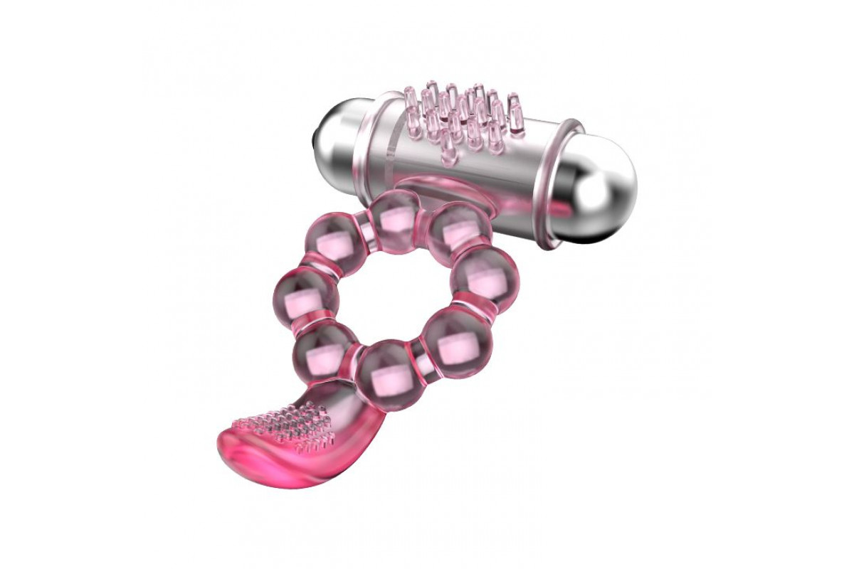 Розовое эрекционное кольцо с вибростимуляцией клитора Baile