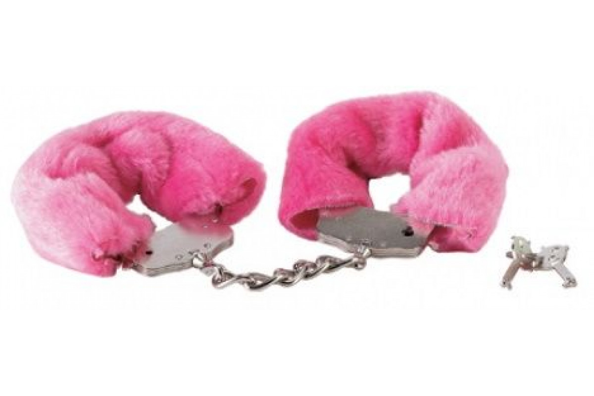 Розовые меховые наручники на сцепке с ключами — идеальный аксессуар для взрослых игр