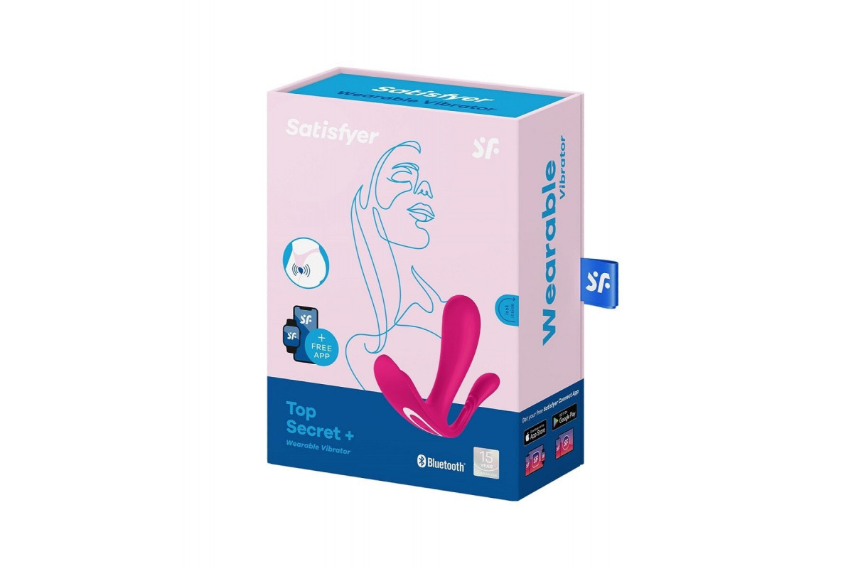Через Bluetooth Top Secret+ подключается к отмеченному наградами бесплатному приложению Satisfyer Connect, что предоставляет вам возможность независимо управлять двумя моторами и настраивать вибрации на ходу (10 режимов на выбор). Top Secret+ изготовлен из безопасного для тела силикона, работает от аккумулятора и имеет степень водонепроницаемости IPX7. Диаметр отростков - 3 и 1,7 см.