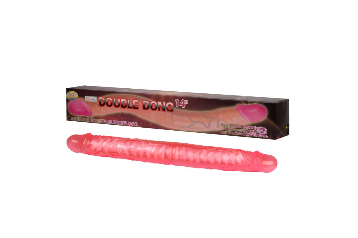 Розовый двусторонний гнущийся фаллоимитатор – 36 см