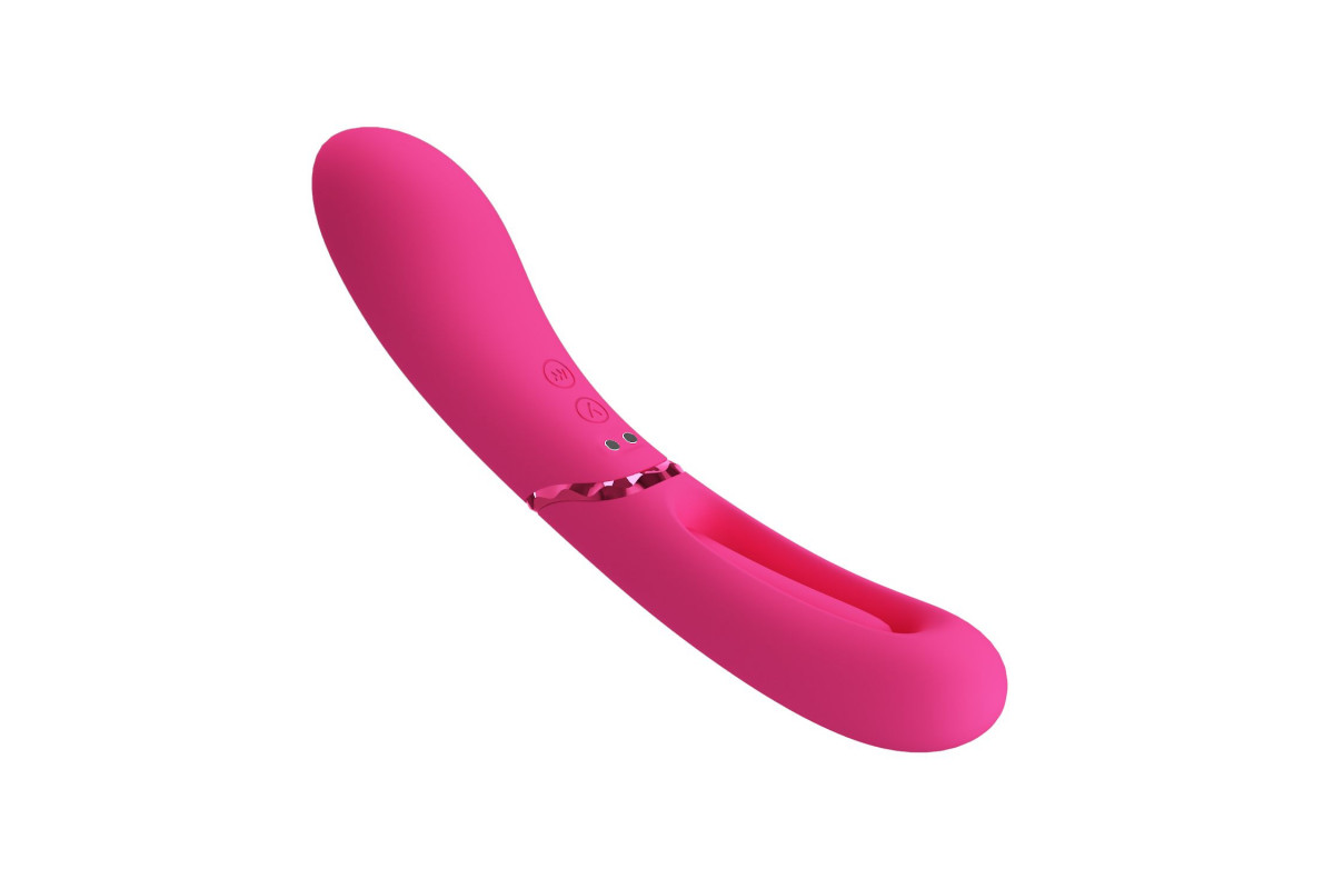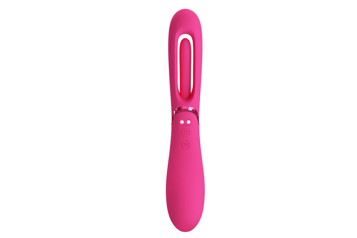 Розовый двусторонний вибратор с функцией фингеринга Lexie - 20 см.