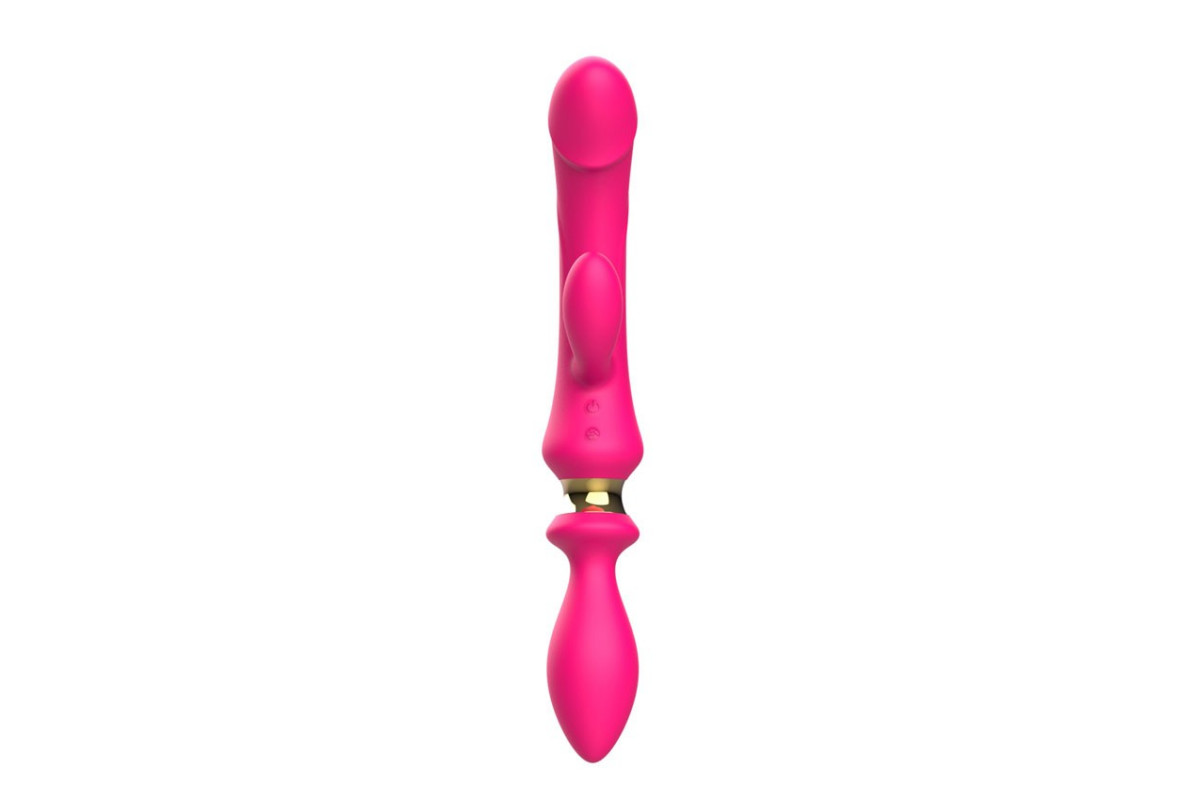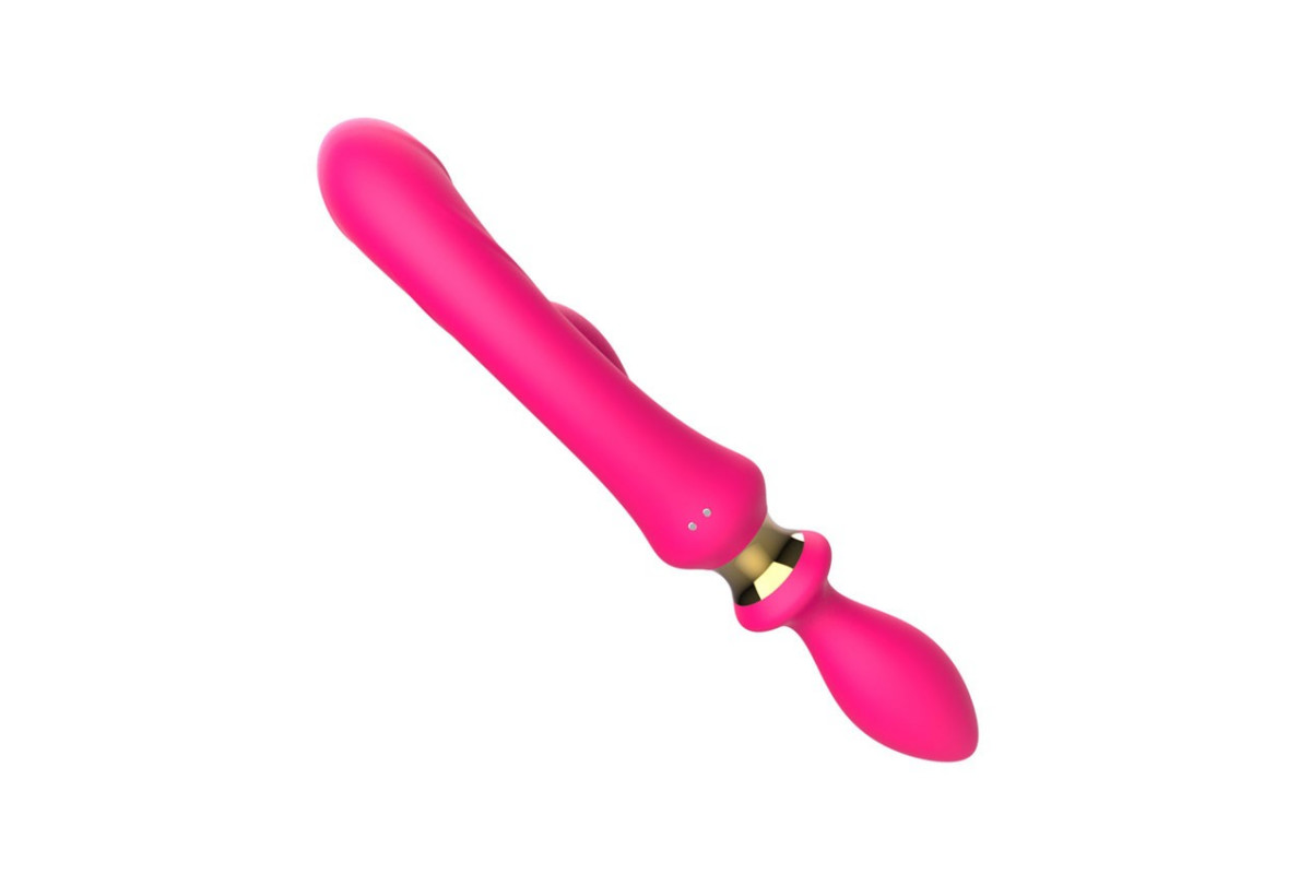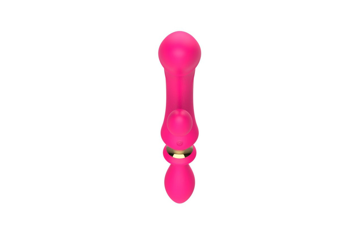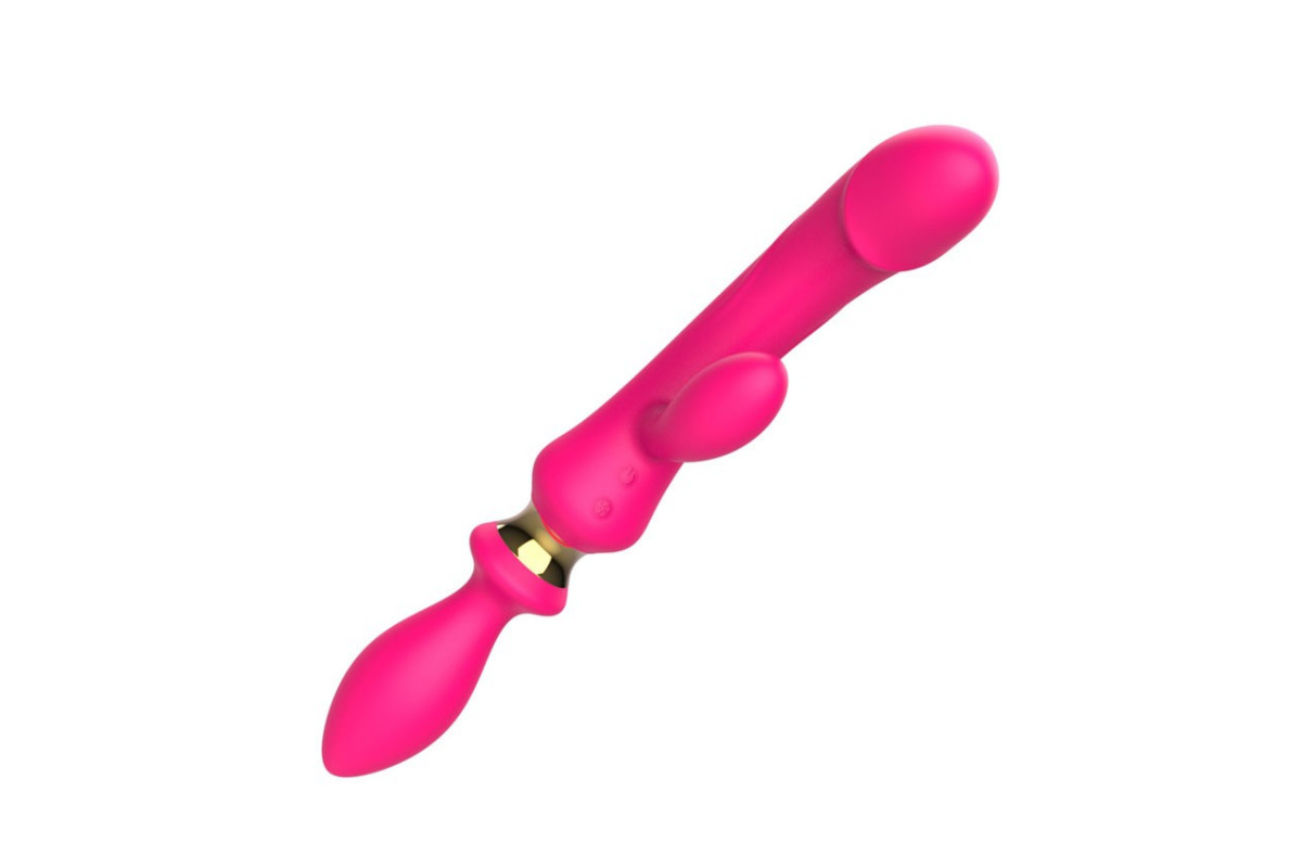 Розовый двусторонний вибромассажёр с клиторальным отростком – удовольствие без границ
