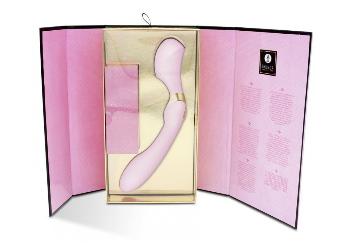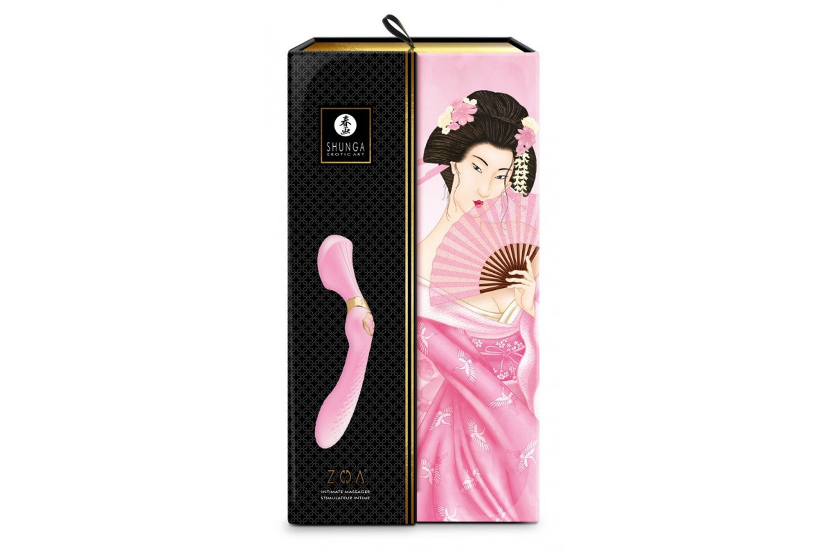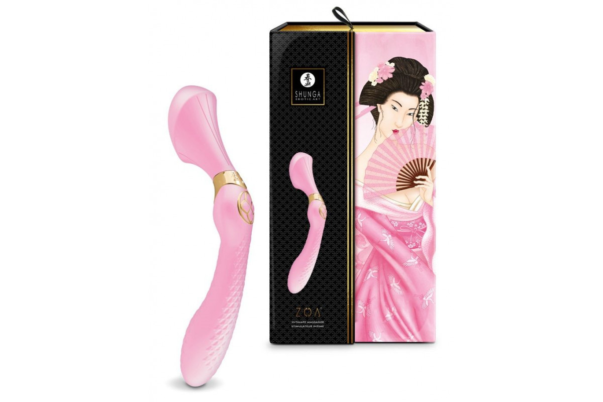 Розовый двусторонний вибростимулятор ZOA — 26,5 см