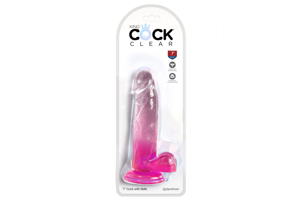 Розовый фаллоимитатор с мошонкой на присоске 7’’ Cock with Balls — идеальный выбор для насыщенных ощущений
