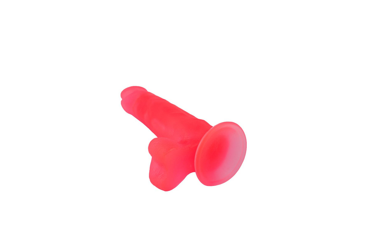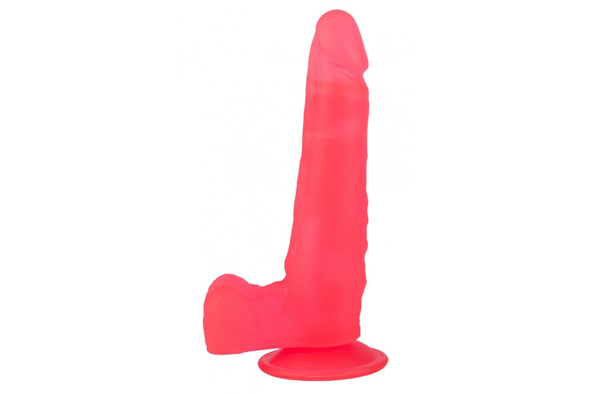 Розовый фаллоимитатор с удлинённой мошонкой — 16,5 см