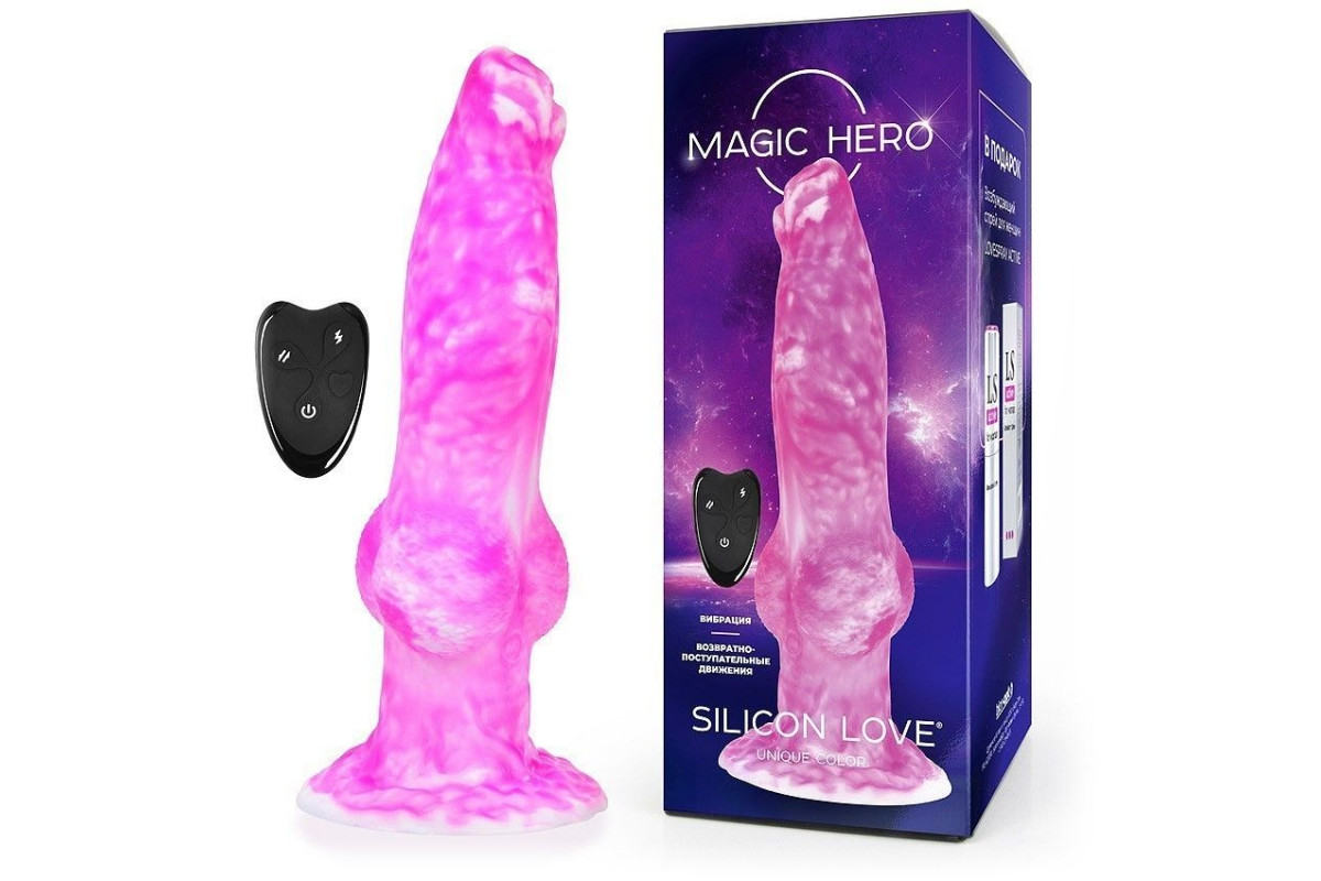 Розовый фантазийный вибратор с 7 режимами возвратно-поступательных движений – 23,5 см