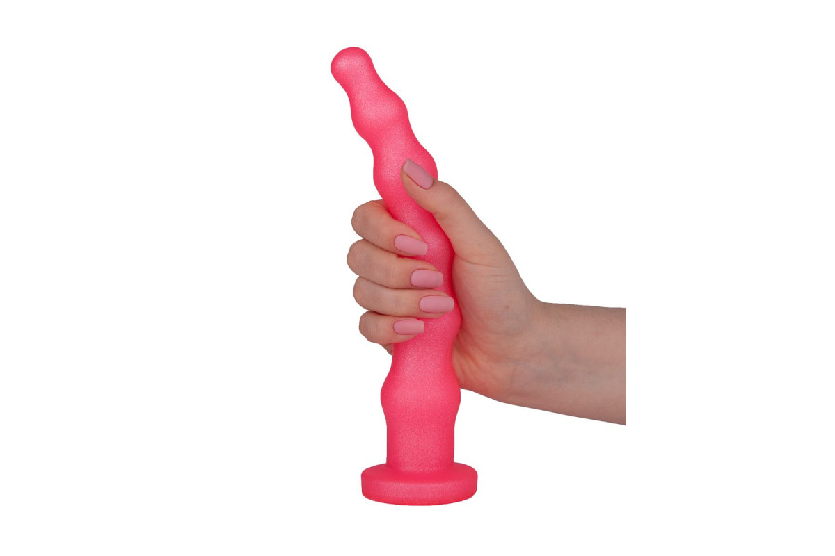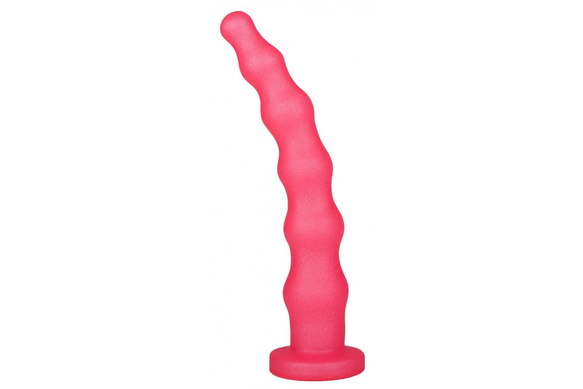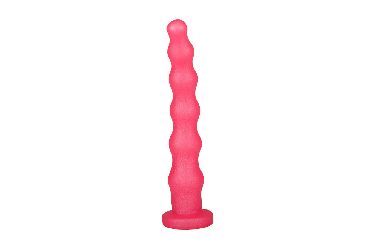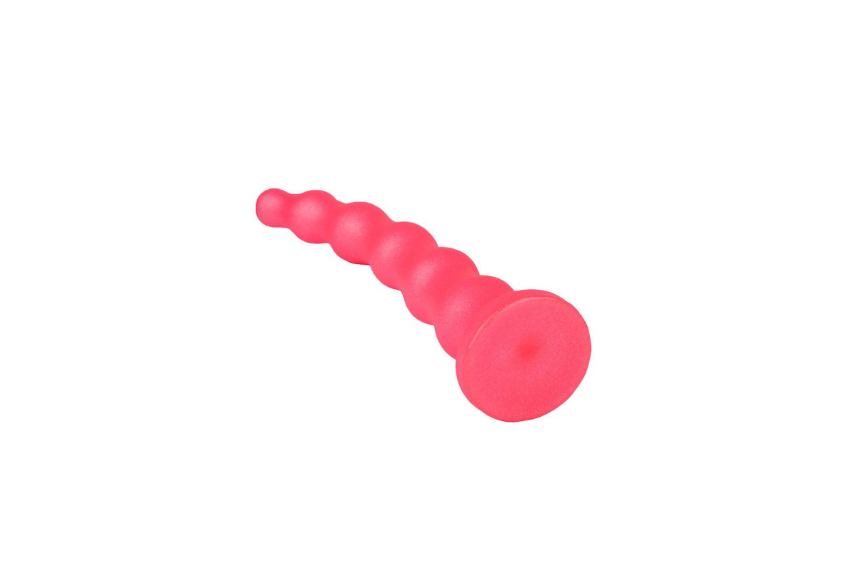 Розовый гелевый анальный стимулятор. Форма в виде шариков. Материал эластичный, в меру жесткий, но упругий.