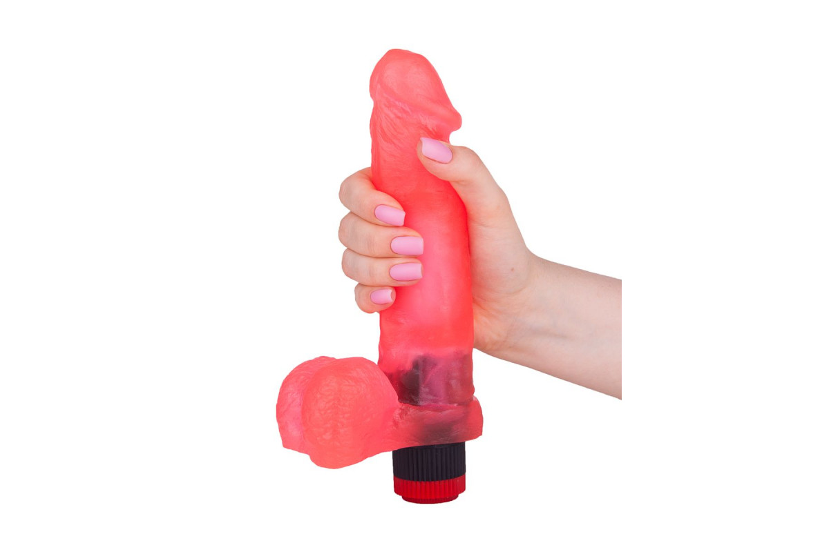 Розовый гелевый вибромассажёр в виде фаллоса — 19 см