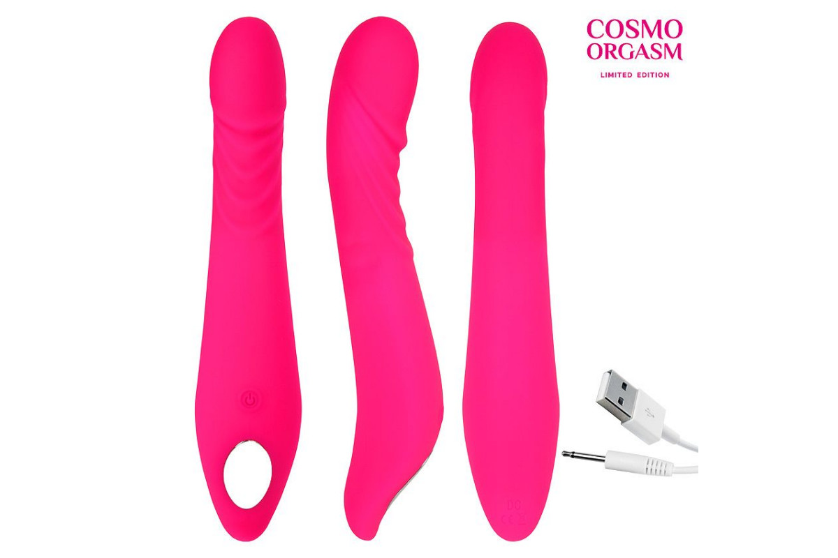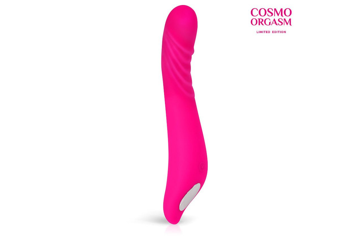 Розовый изогнутый вибромассажёр из силикона для G-стимуляции