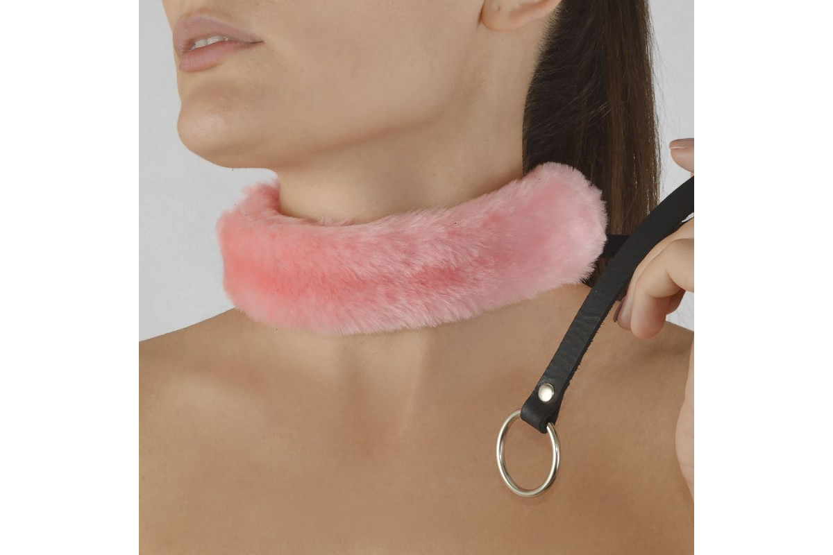 Розовый меховой ошейник с кожаным поводком — стильное и элегантное дополнение для особых моментов