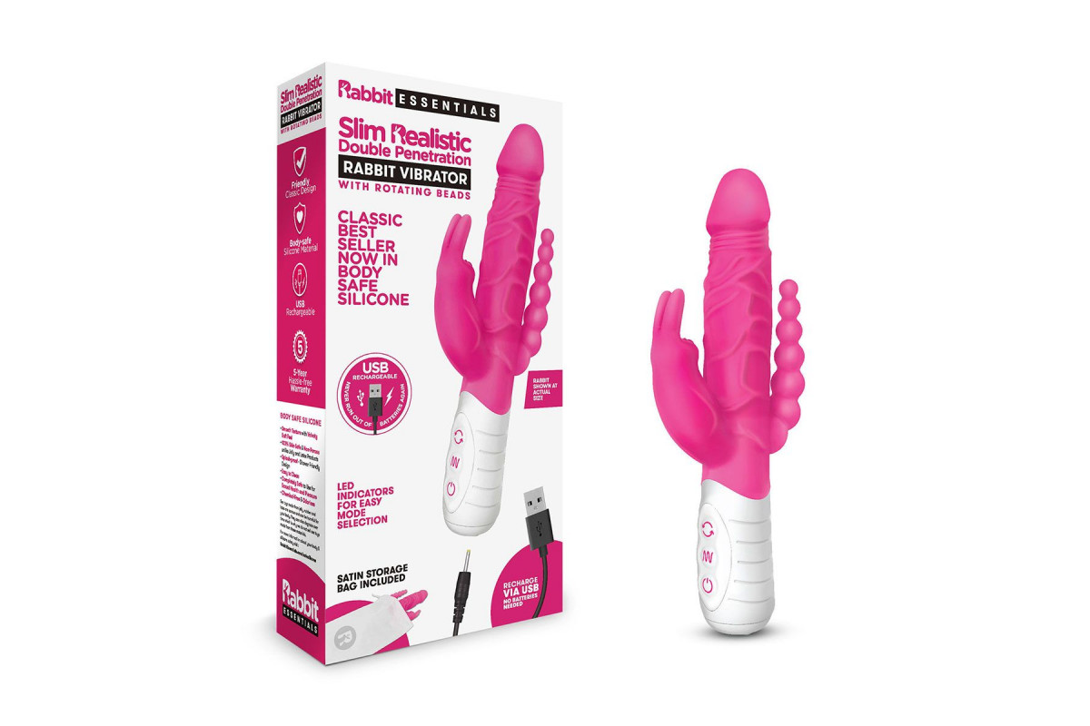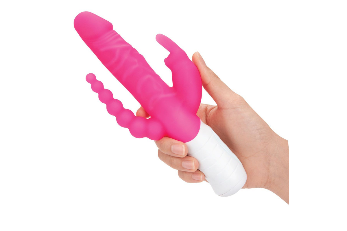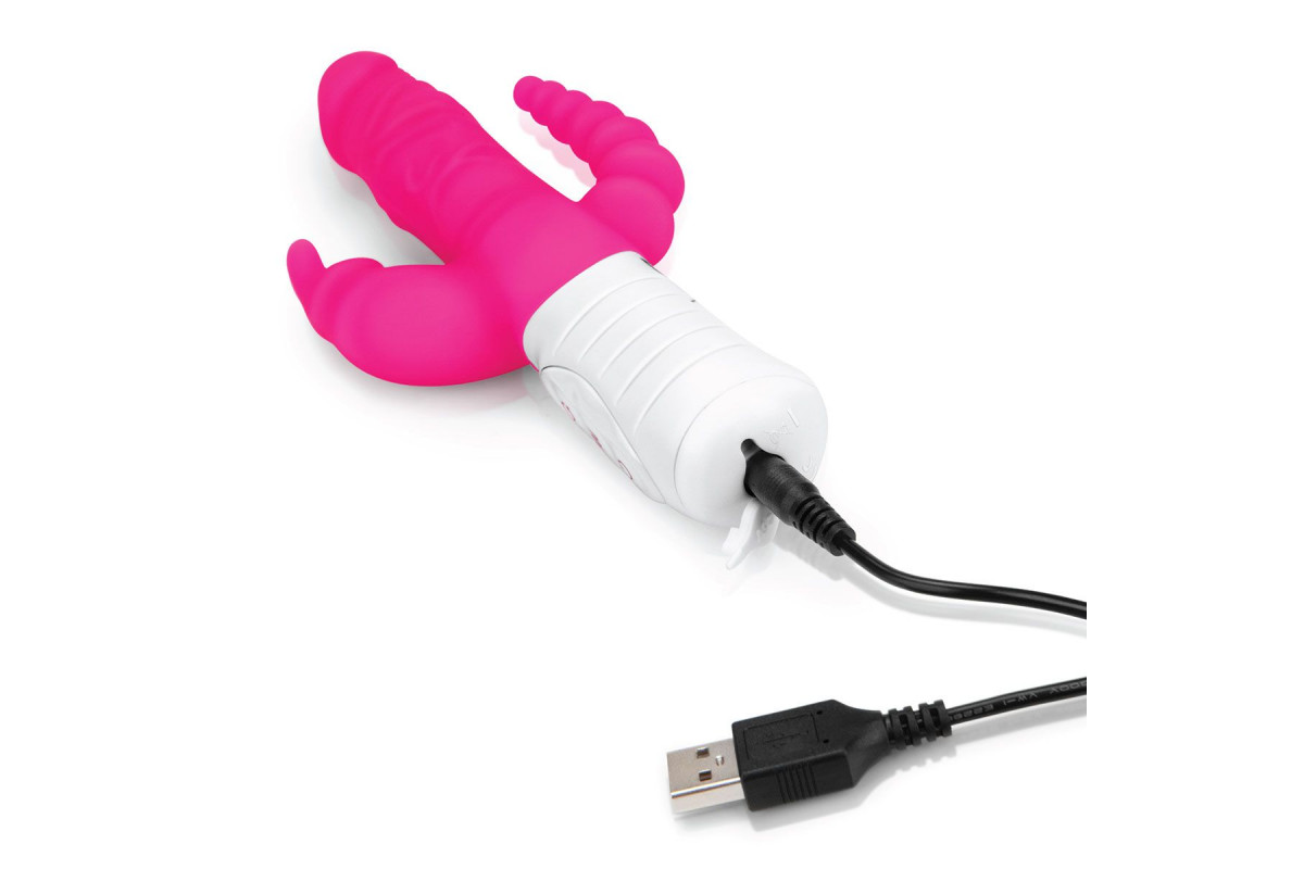 Розовый перезаряжаемый вибратор с 2 дополнительными отростками – наслаждение без границ