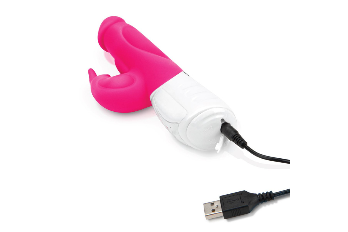 Розовый перезаряжаемый вибратор с клиторальным стимулятором — 25 см