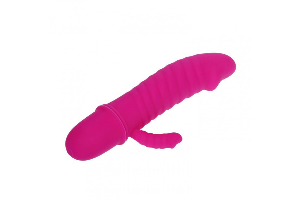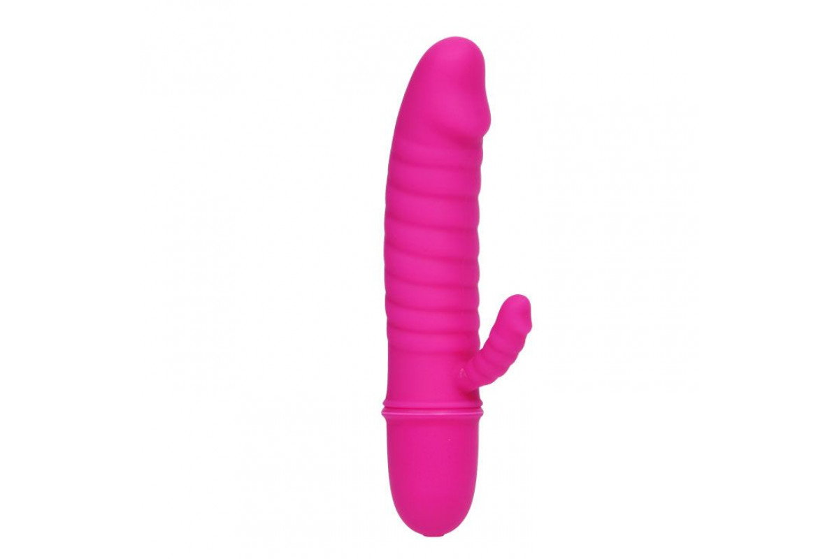 Розовый ребристый мини-вибратор с клиторальным отростком Arnd - 11,5 см.