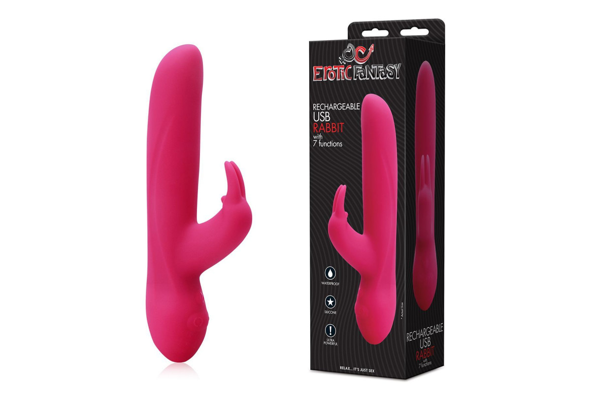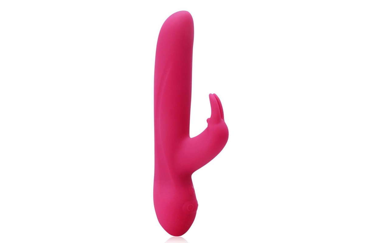 Розовый силиконовый вибратор с клиторальным отростком и 7 режимами вибрации — 21 см