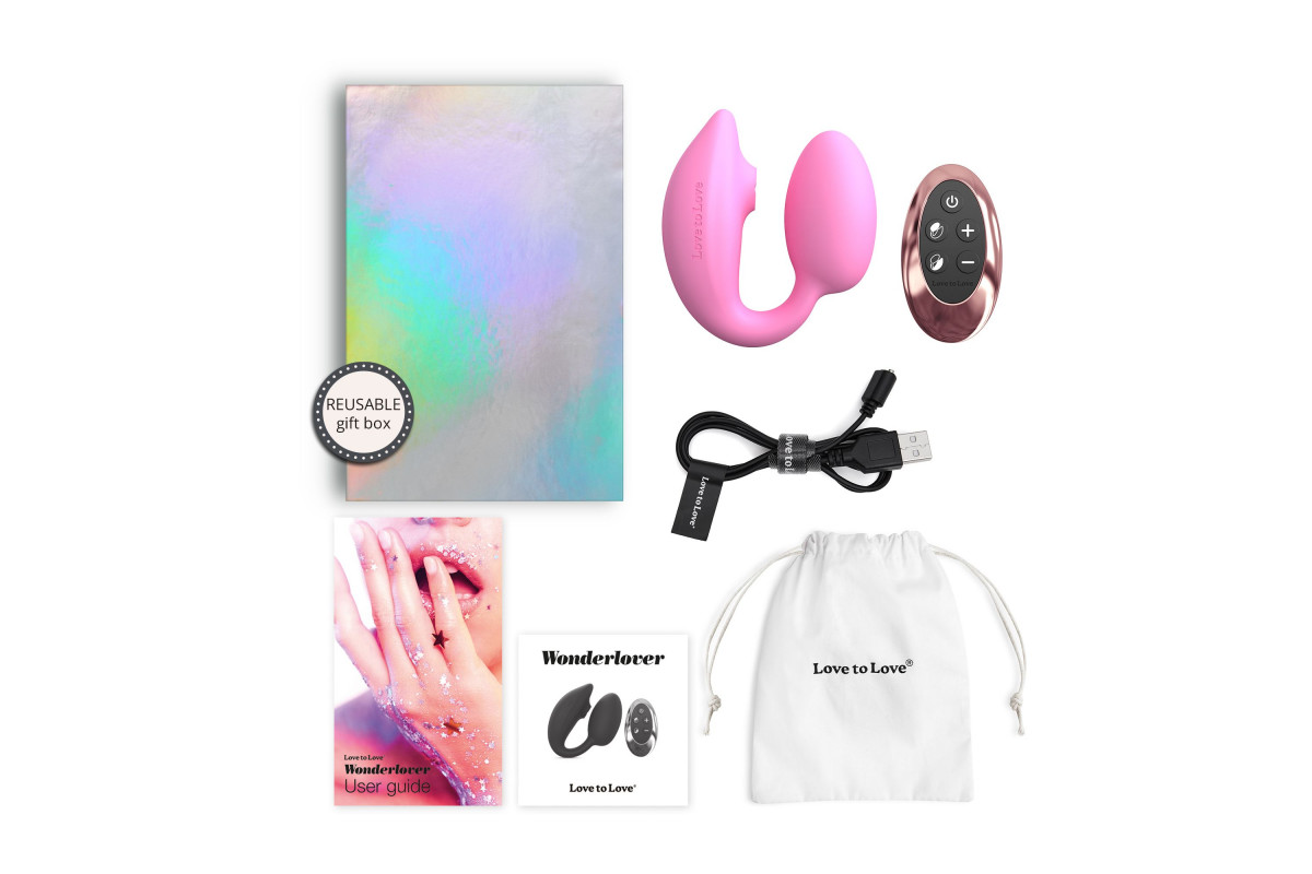 Розовый U-образный стимулятор клитора и точки G с пультом ДУ Wonderlover