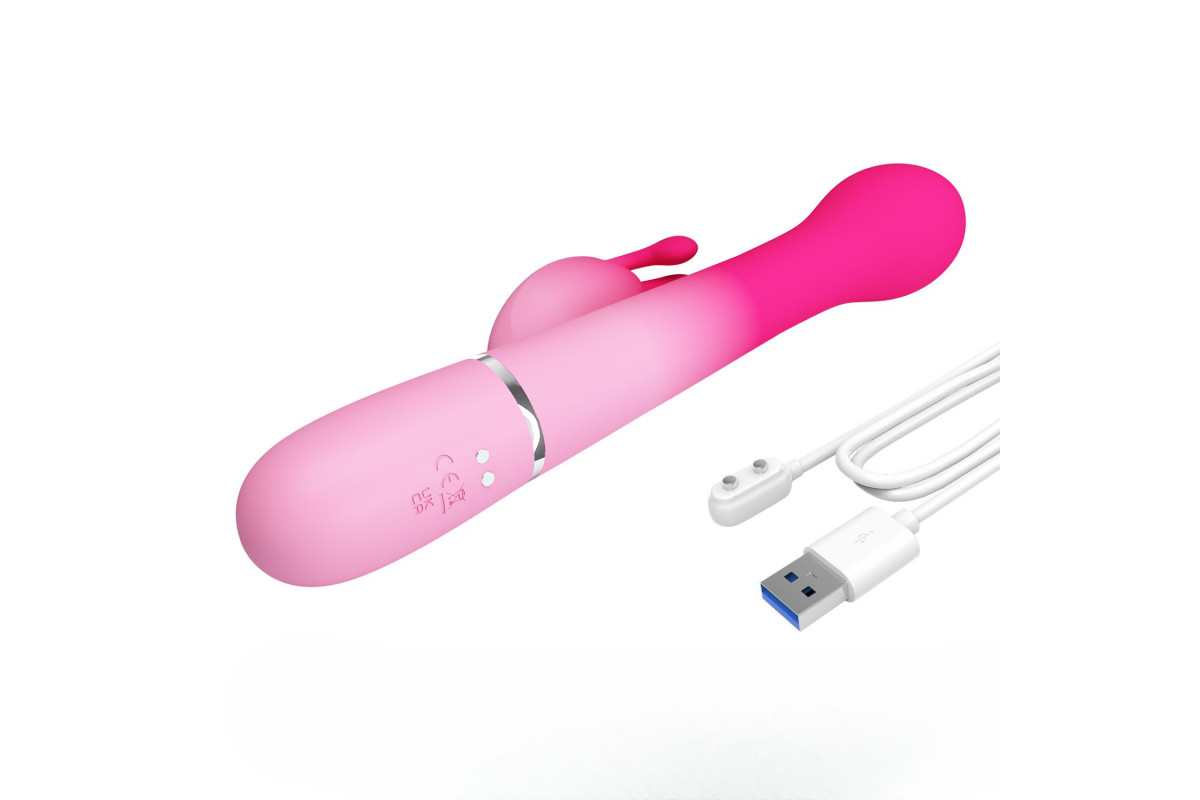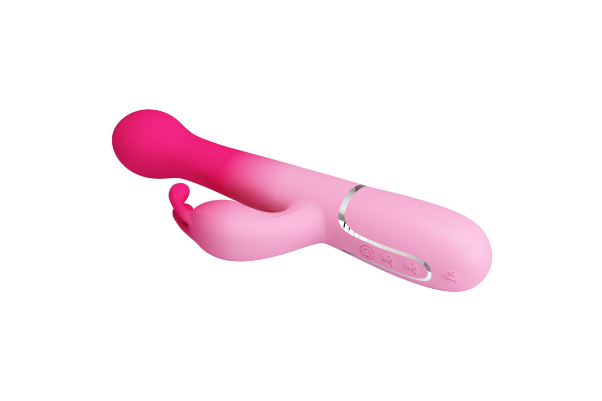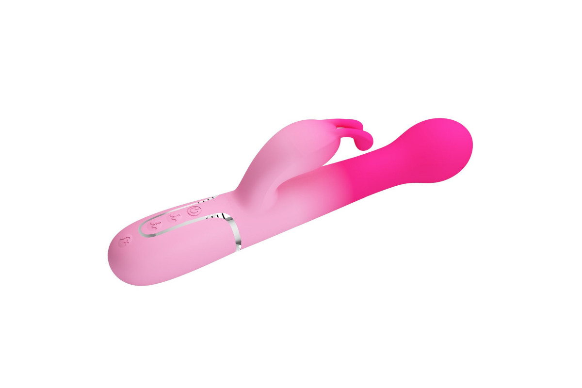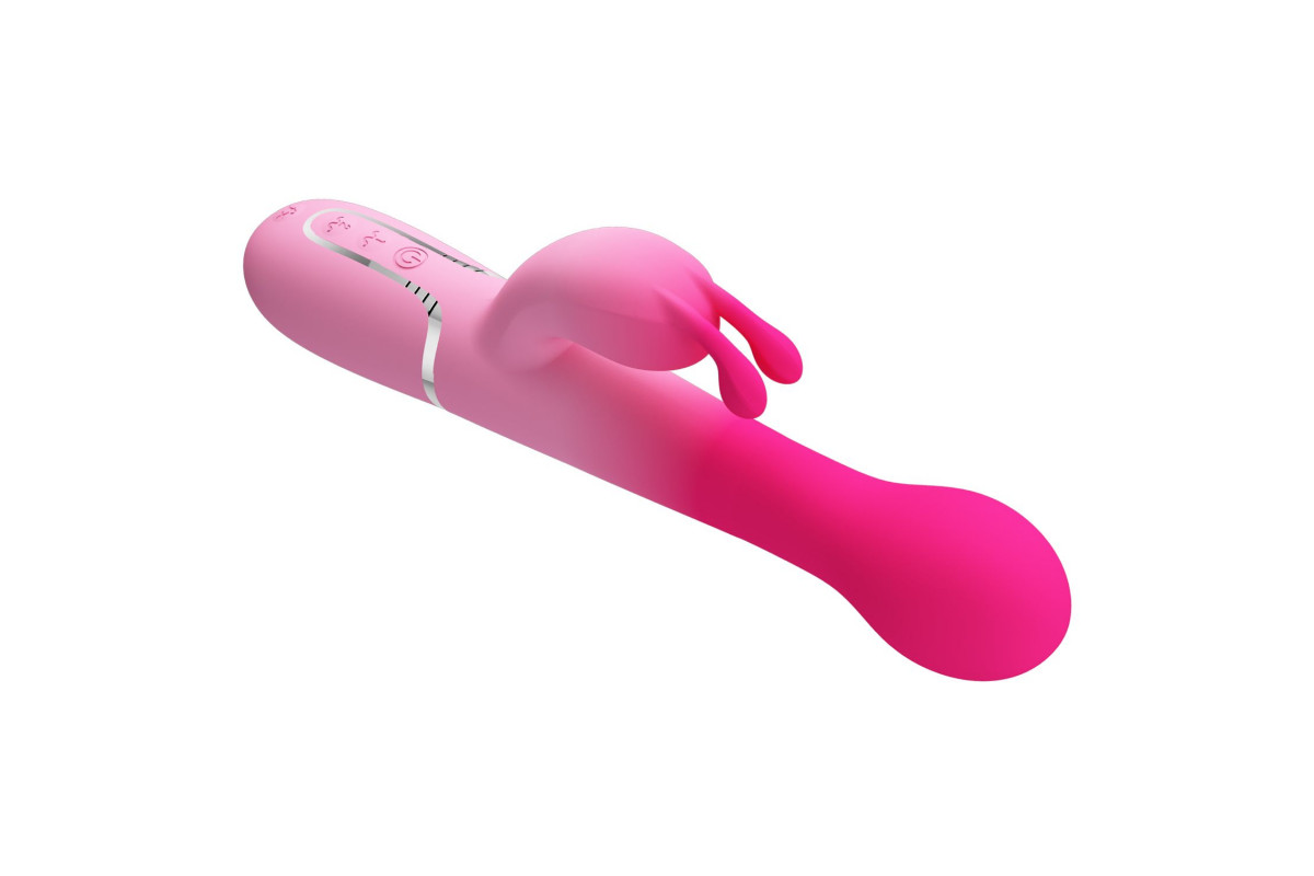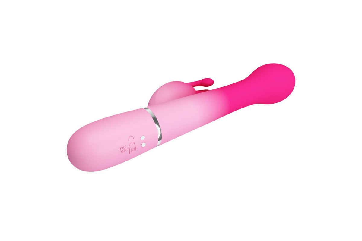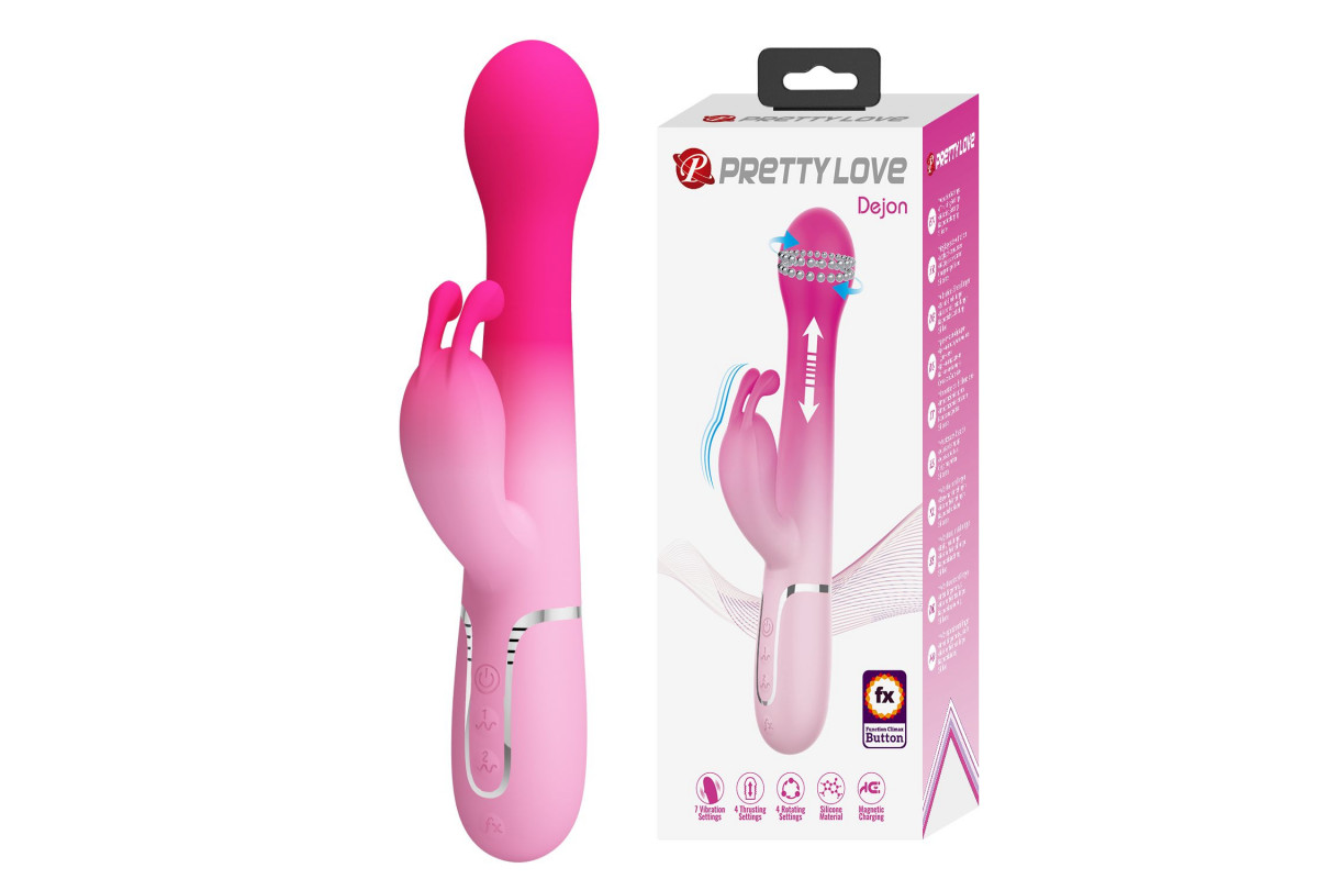 Розовый вибратор-кролик Dejon с ротацией бусин и возвратно-поступательными движениями