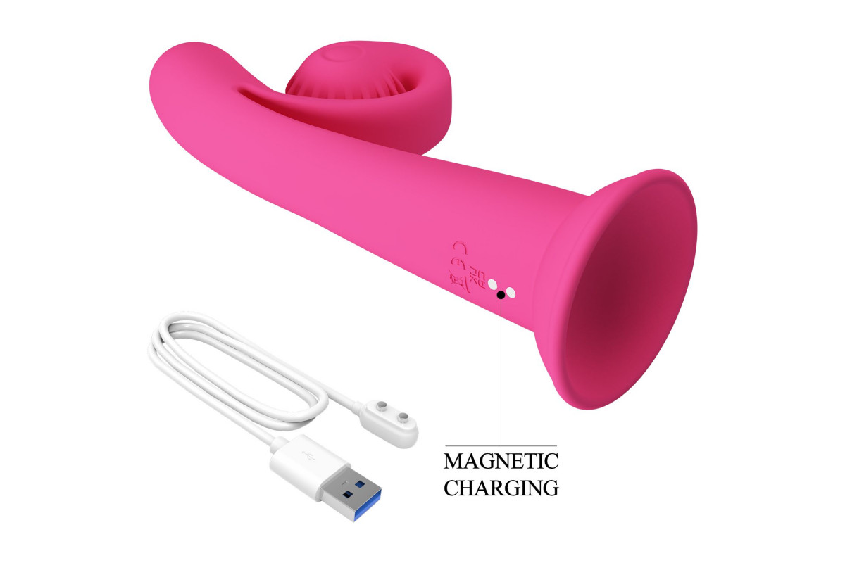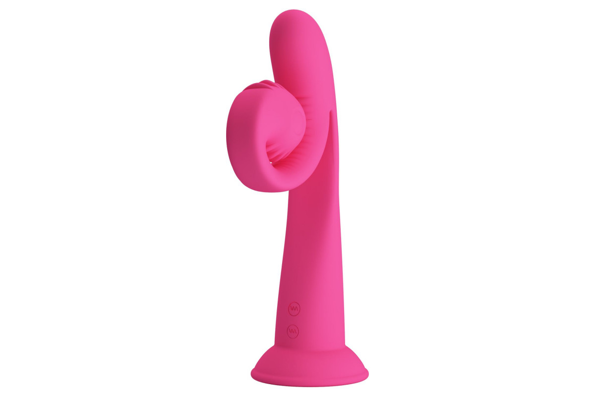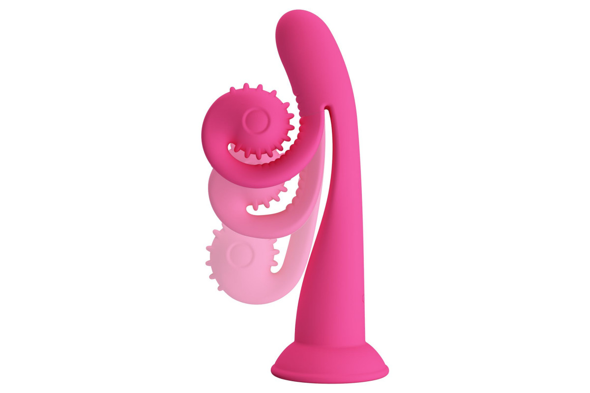 Розовый вибратор на присоске с закрученным клиторальным отростком – уникальный опыт наслаждения
