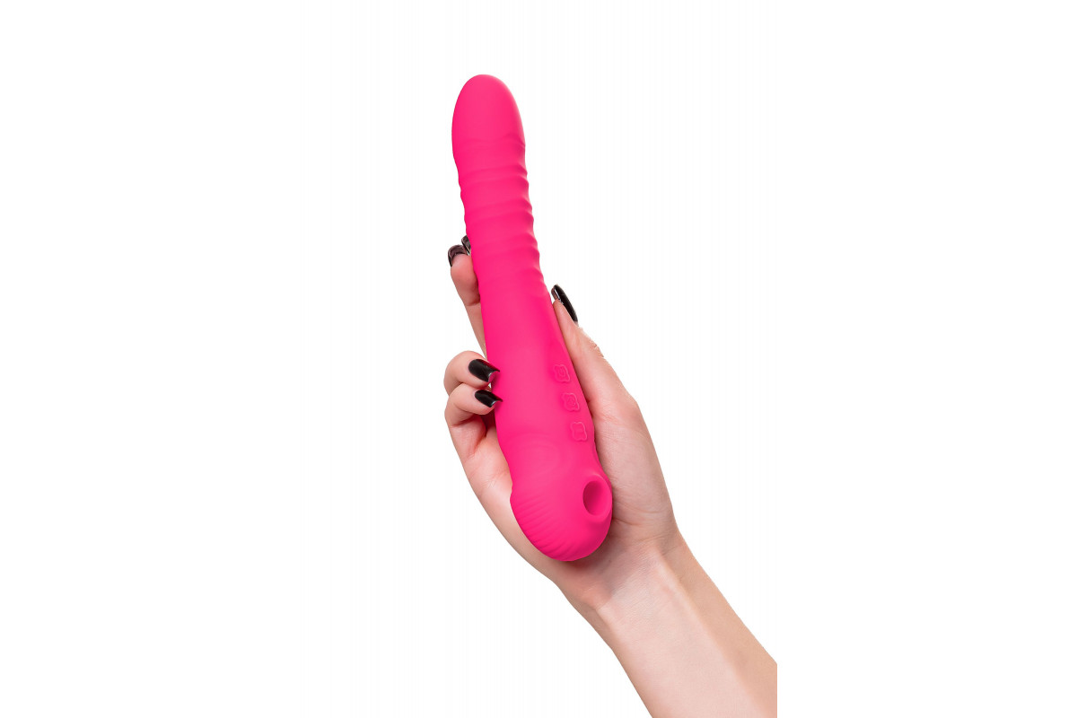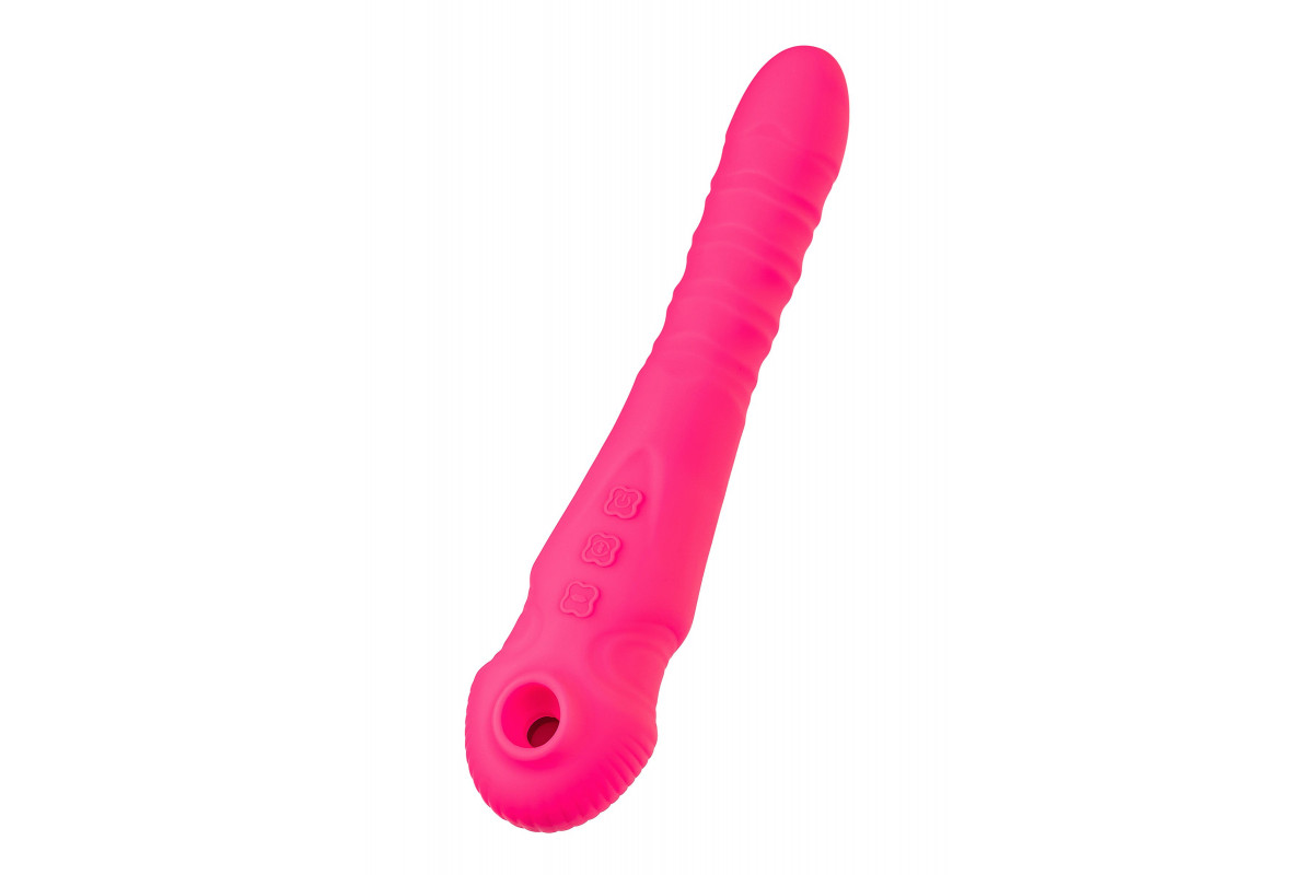 Розовый вибратор-пульсатор Cotox с вакуумной стимуляцией – 23 см