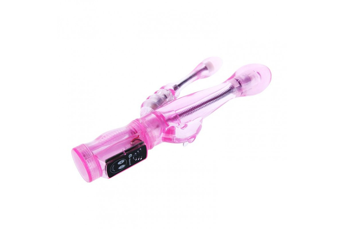 Розовый вибратор с анальным и клиторальным отростками Intimate Tease - 22,5 см.