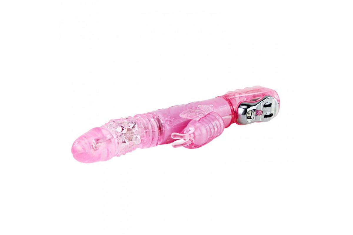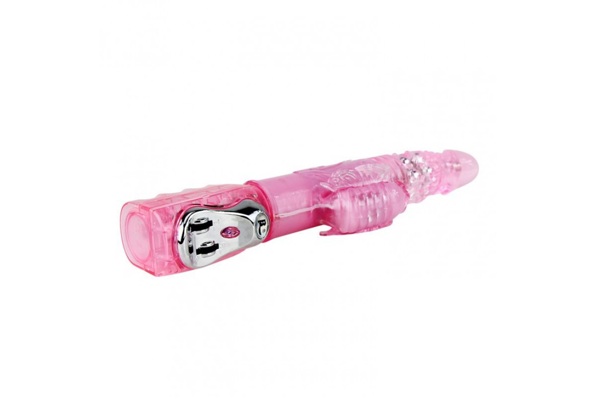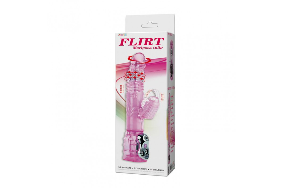 Розовый вибромассажер Mariposa Tulip с поступательными движениями и ротацией бусин - 29,5 см.