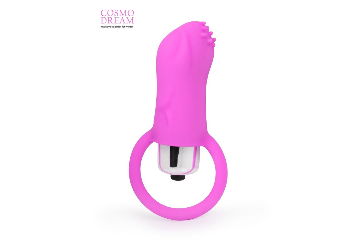 Розовый вибромассажер с рельефной поверхностью и петелькой