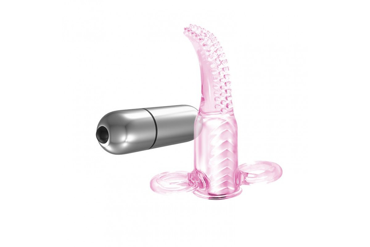 Розовый вибромассажер с щёточкой и петлями для пальцев Vibro Finger — уникальный аксессуар для взрослых