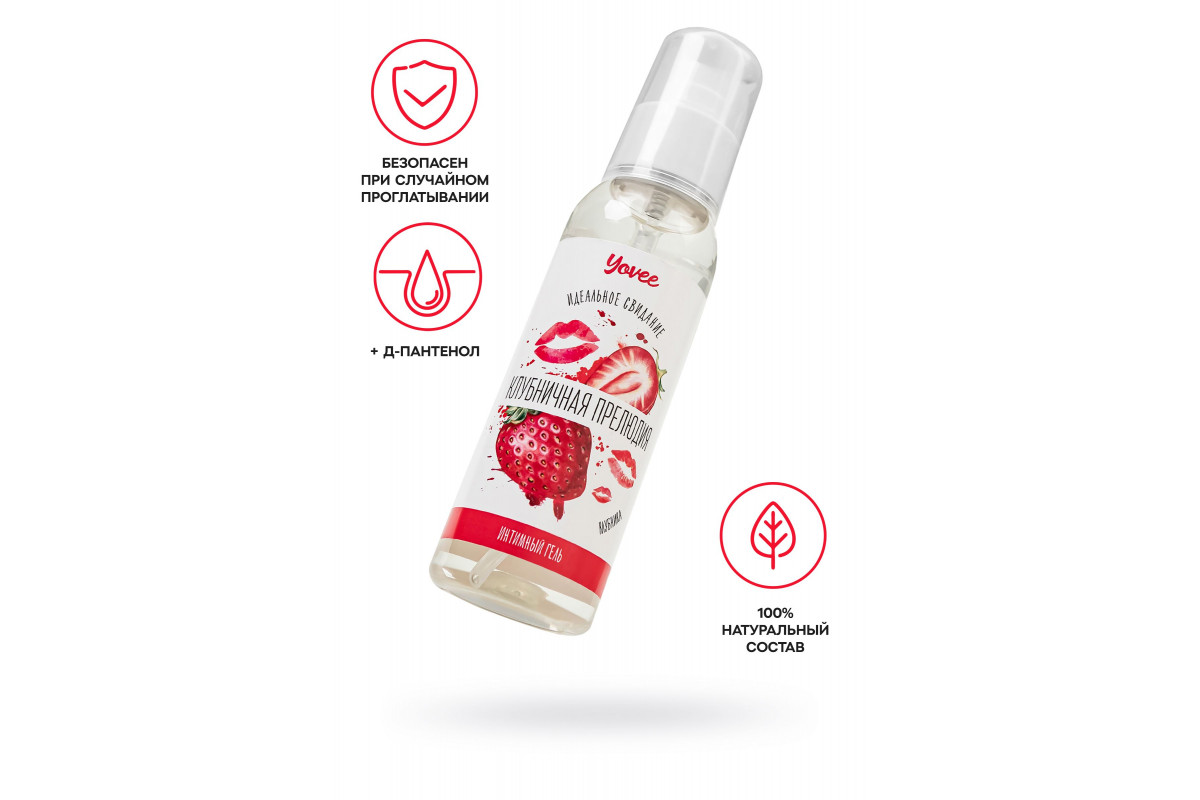 Интимный гель-смазка Yovee «Клубничная прелюдия» подарит комфорт и безупречное скольжение. Пантенол окажет успокаивающее и смягчающее действие, ускорит процессы регенерации слизистых. Пленительный аромат и вкус клубники усилят удовольствие. Подходит для использования как с презервативом, так и без него. Шелковистая текстура на водной основе обеспечивает длительное скольжение без липкости и скатывания. Легко смывается водой, не оставляет следов на одежде и постельном белье. Благодаря безопасным ингредиентам не нарушает естественный pH. Состав безопасен при случайном проглатывании.