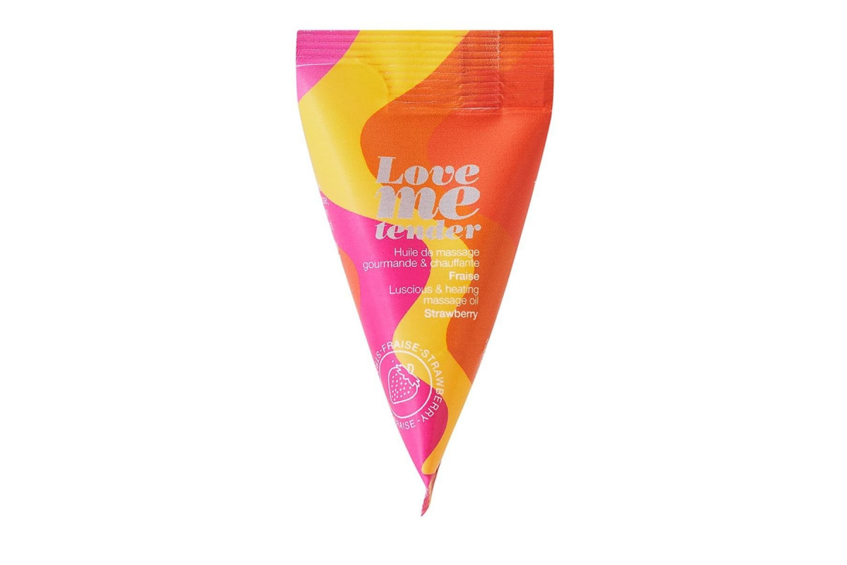 Съедобное согревающее массажное масло Love Me Tender Strawberry с ароматом клубники – 10 мл