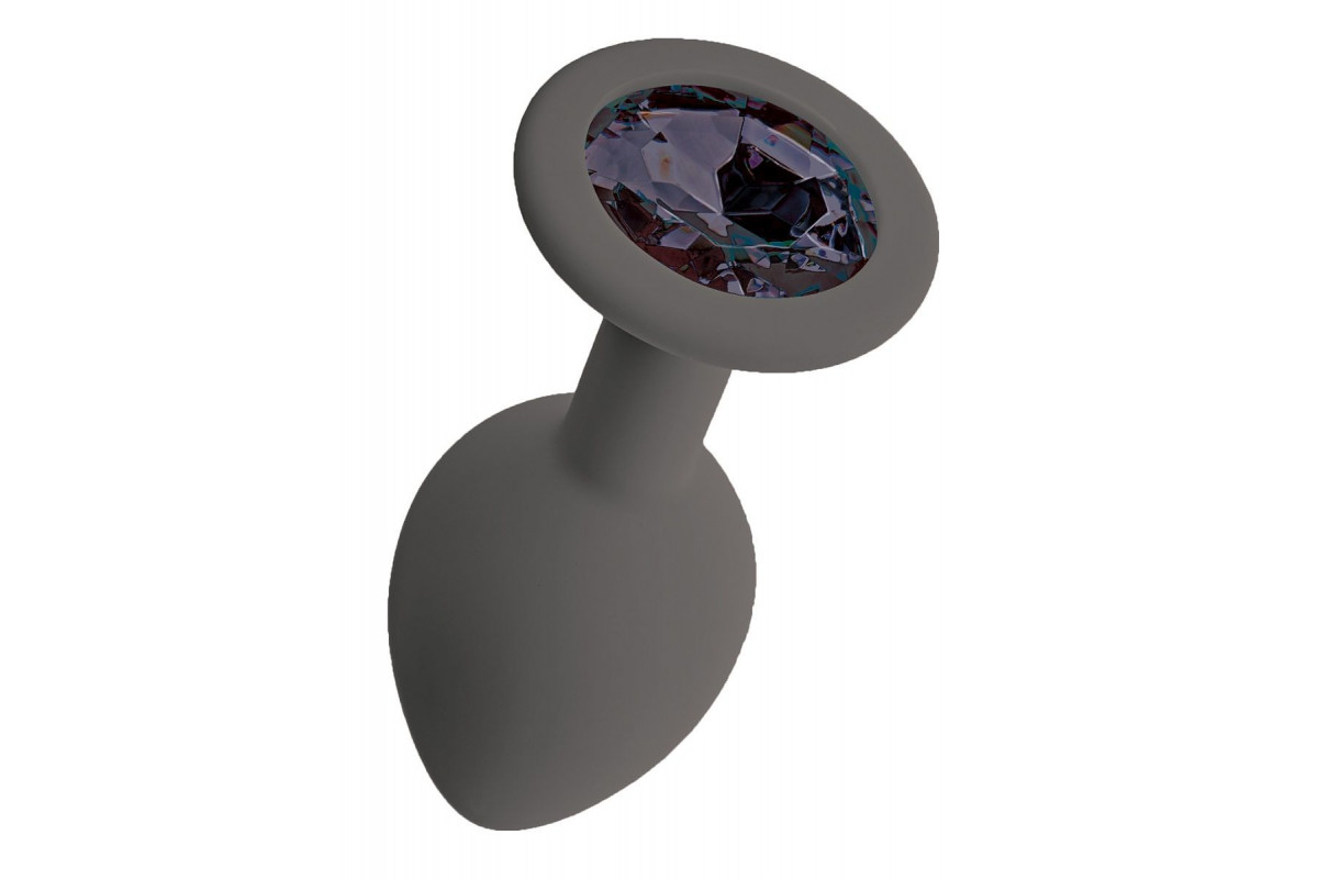 Серая анальная пробка с черным кристаллом Gamma-S - 7,2 см.