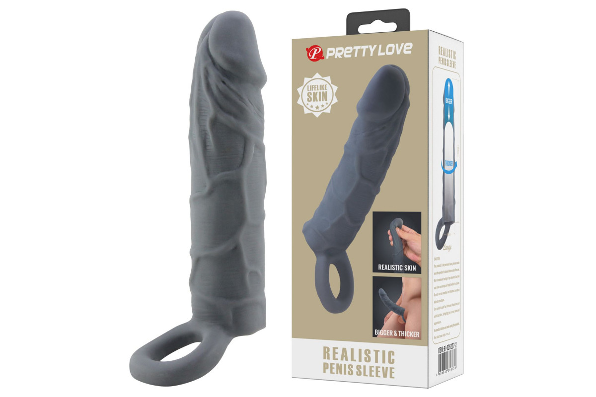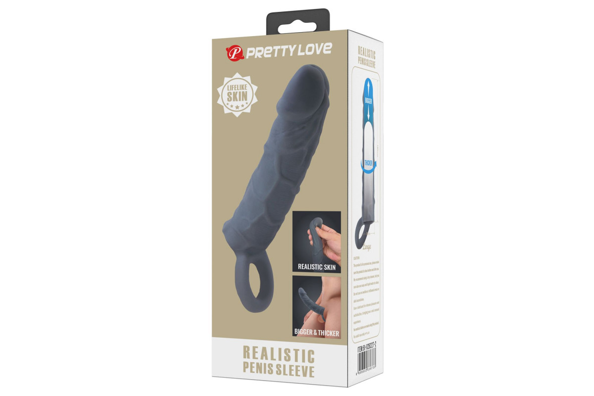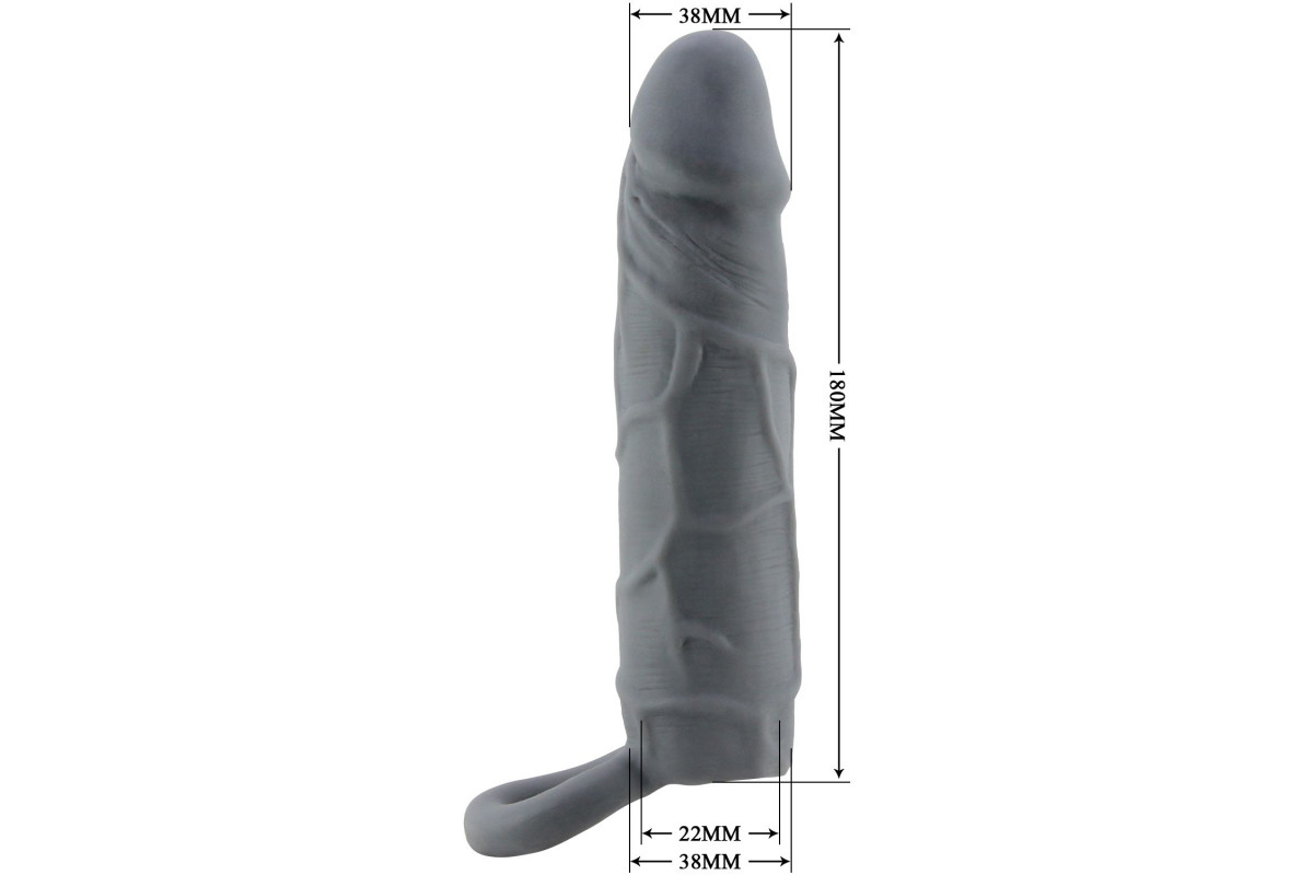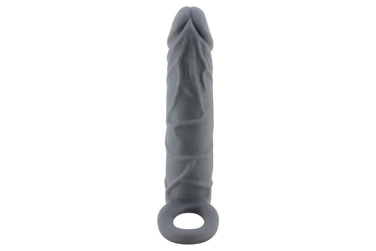 Серая удлиняющая насадка на пенис Large - 18 см.
