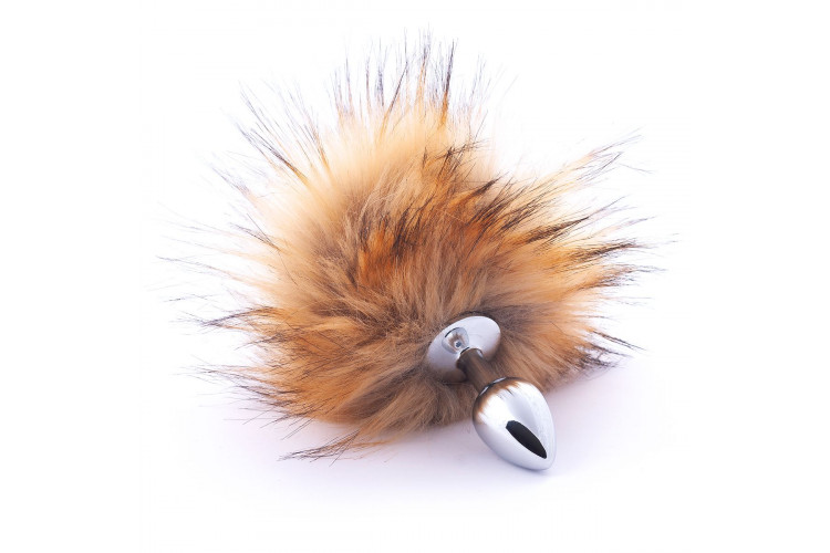 Серебристая анальная пробка с коричневым хвостиком