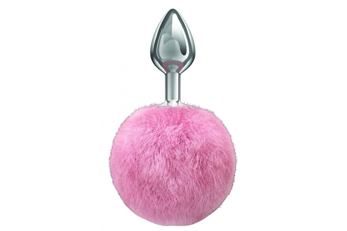 Серебристая анальная пробка с розовым пушистым хвостиком Twinkle