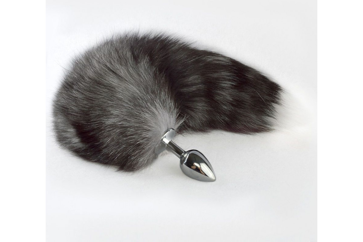 Анальная пробка с натуральным хвостом серого цвета Длина хвоста - 35-40 см.