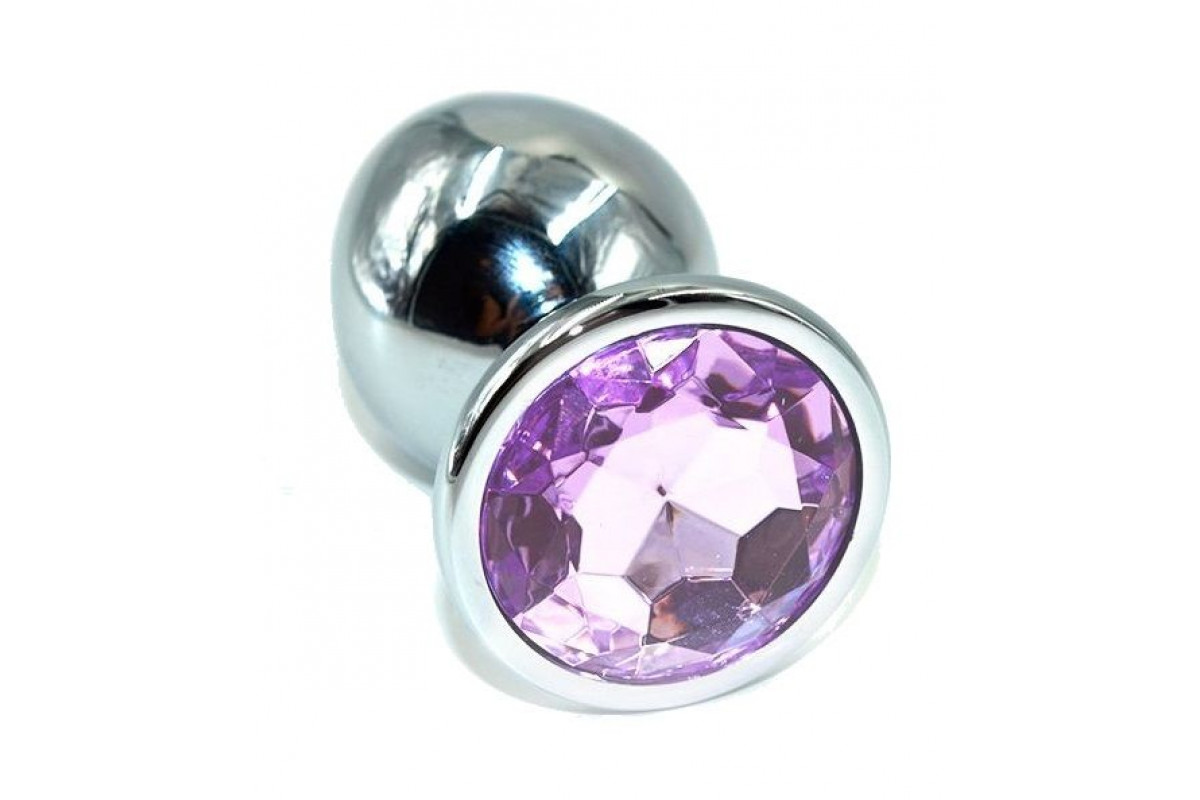 Элегантная серебристая анальная пробка с сиреневым кристаллом