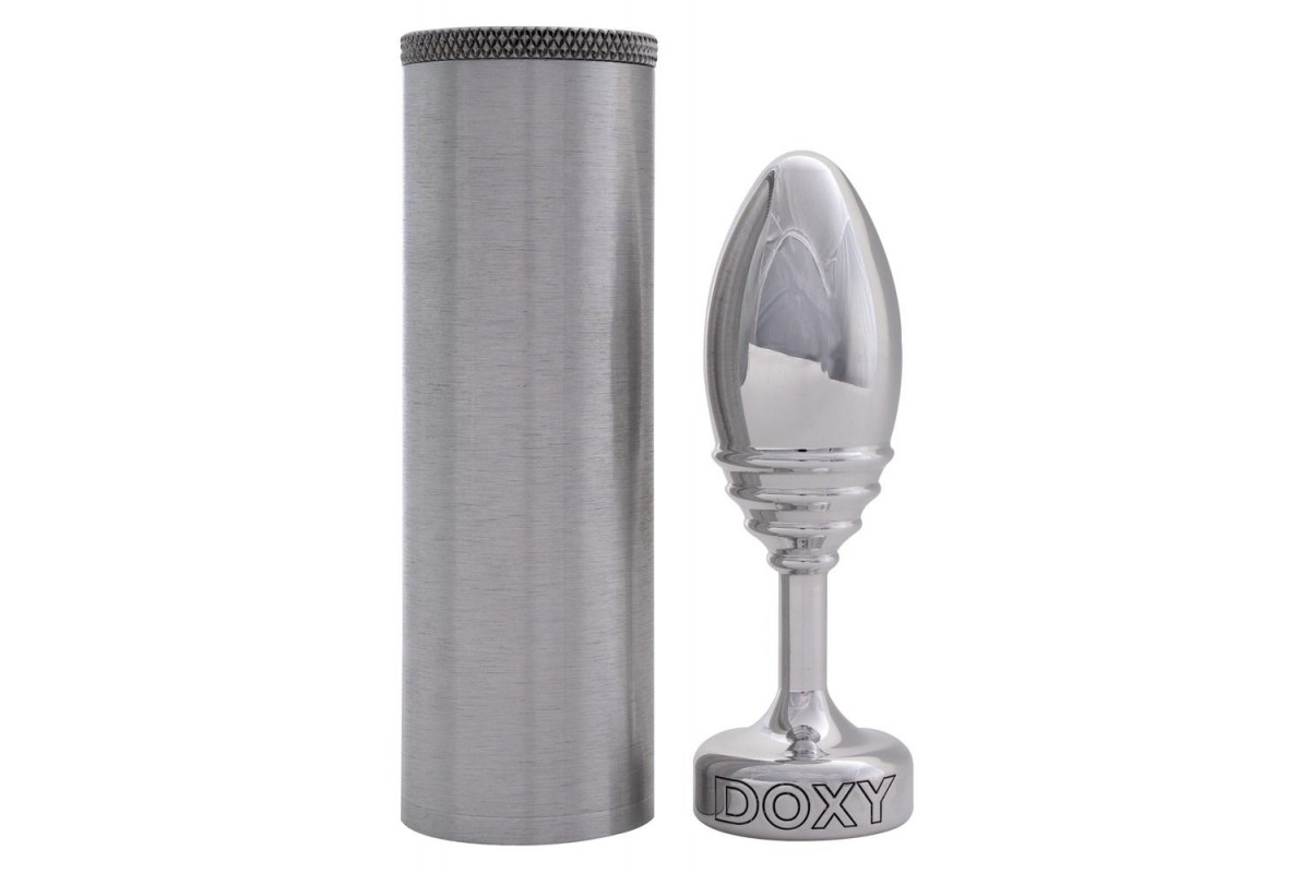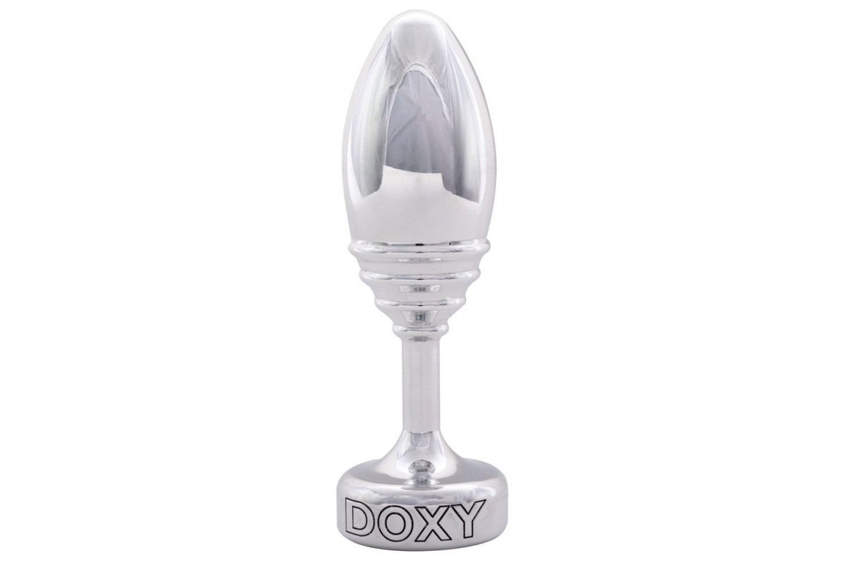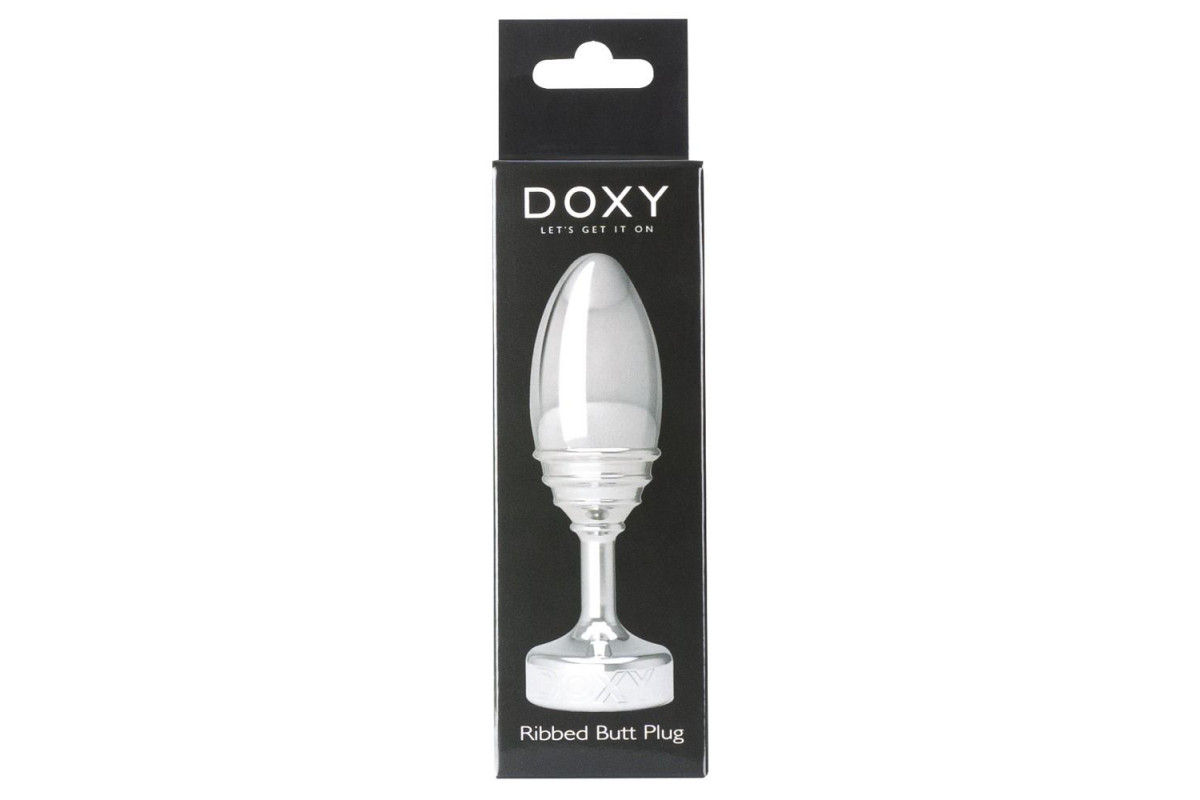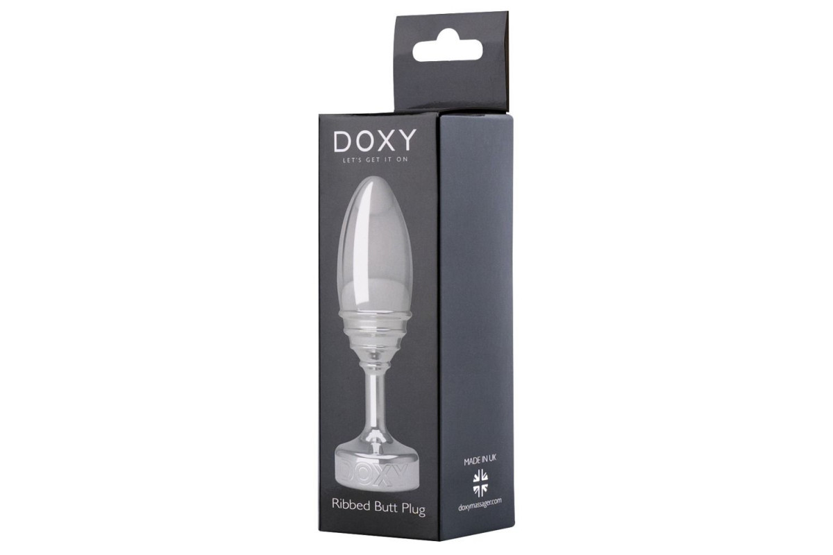 Серебристая анальная втулка Doxy Ribbed Butt Plug - 10,5 см.
