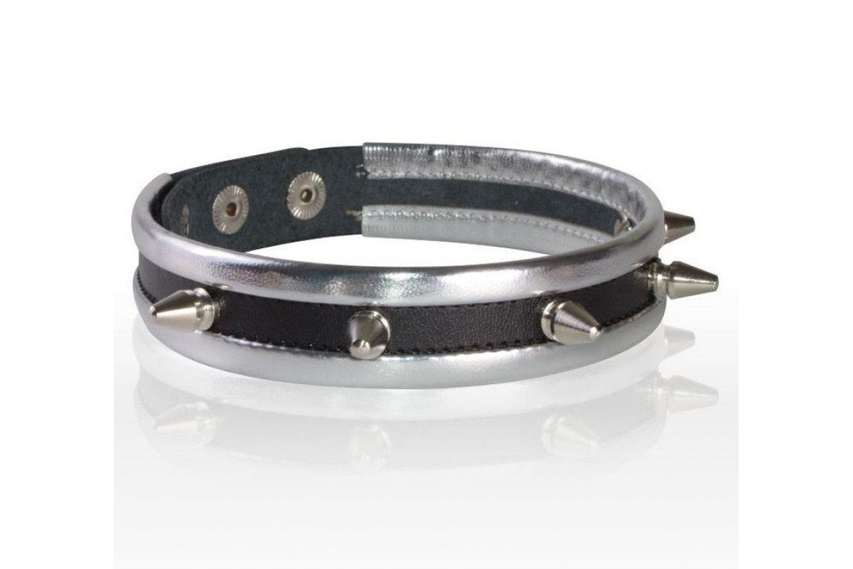 Элегантный серебристо-черный узкий ошейник с шипами — стильное украшение для взрослых