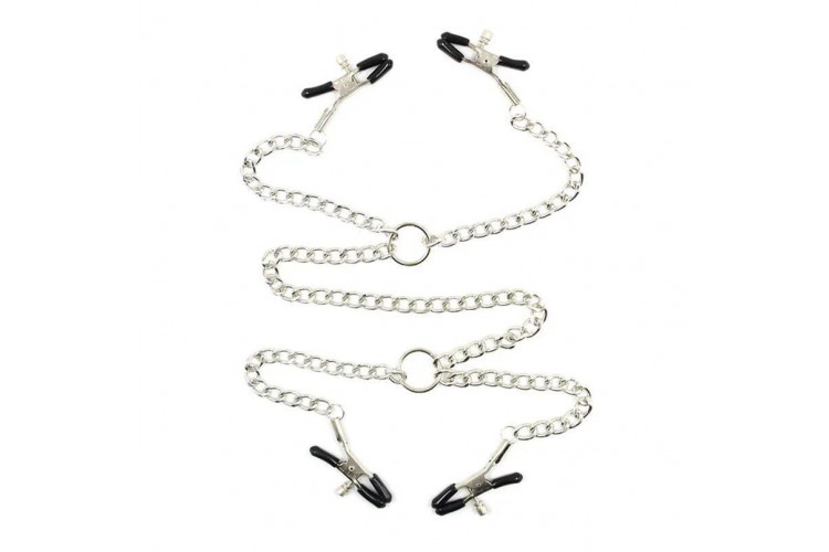 Серебристые зажимы для сосков и половых губ на тонкой цепочке