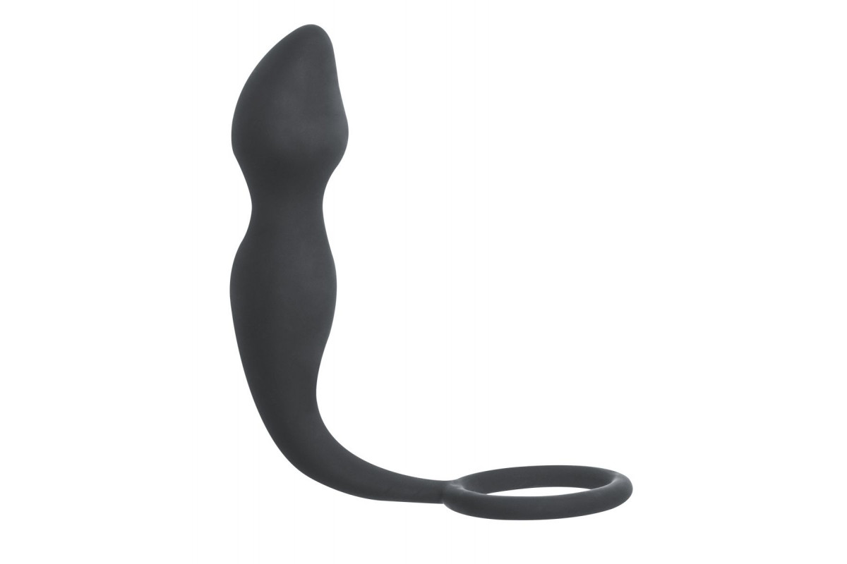 Серое эрекционное кольцо Sensation с анальным стимулятором