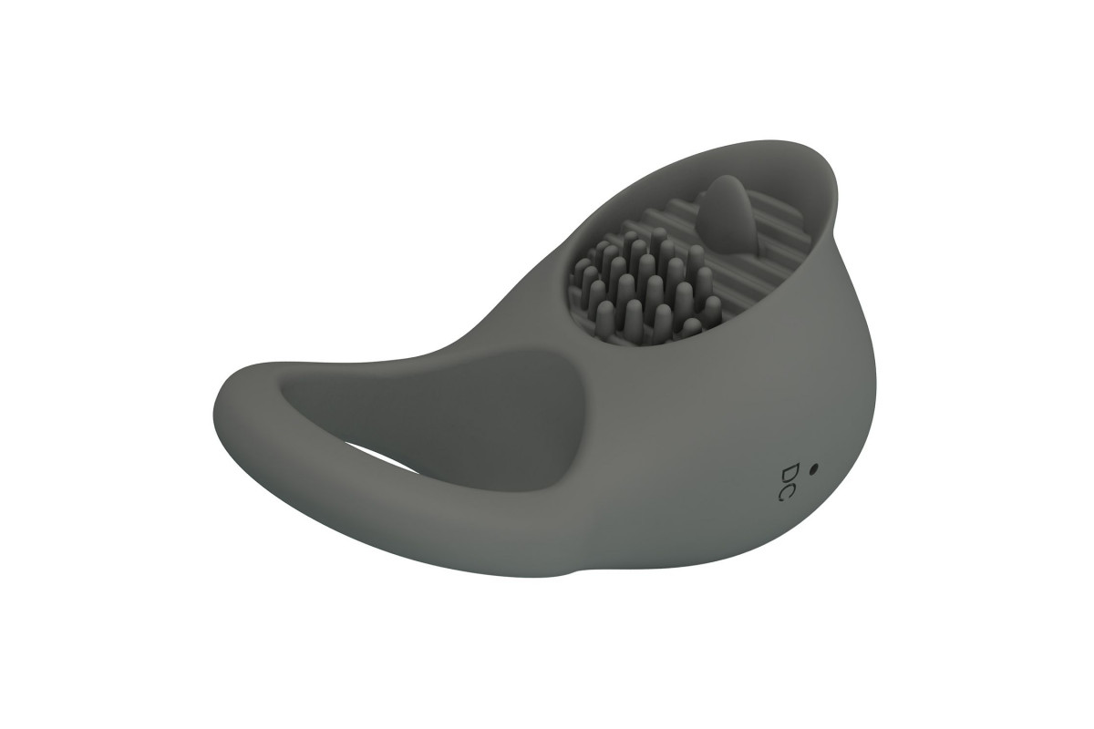 Серое эрекционное виброкольцо со стимуляцией клитора