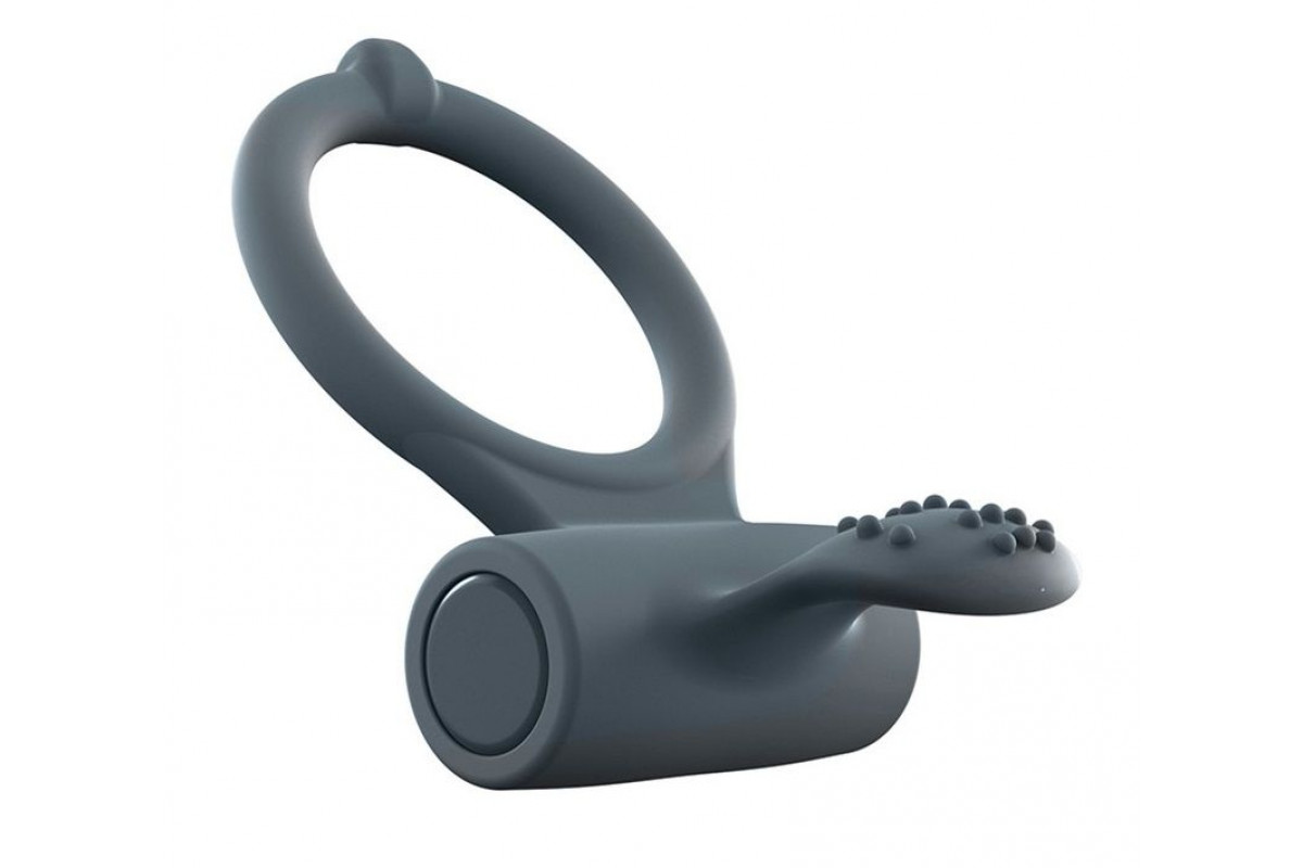 Серое перезаряжаемое эрекционное кольцо с вибрацией Power Clit