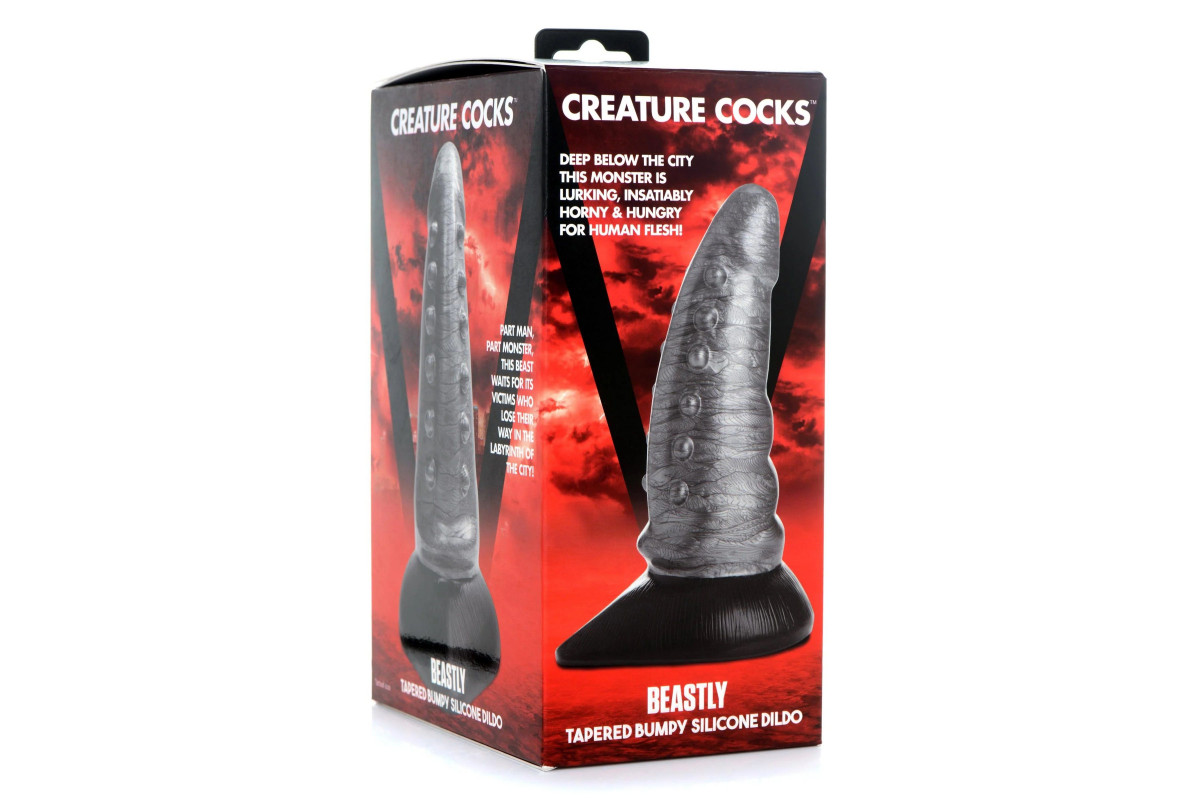 Серый фантазийный фаллоимитатор Beastly Tapered Bumpy Silicone Dildo - 21 см.