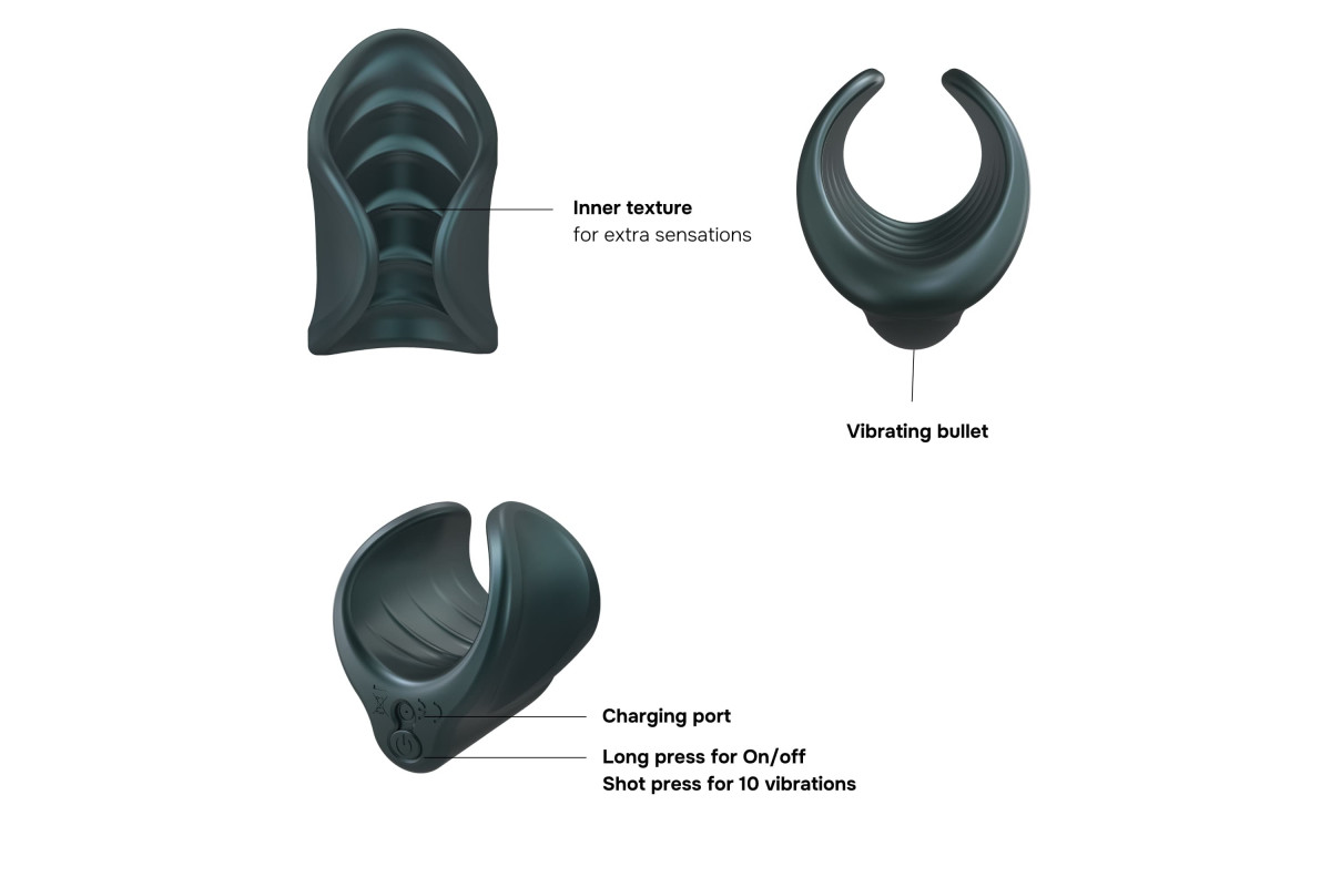 Во время использования его внутренняя текстура обеспечивает насыщенную сенсорную стимуляцию. При статичном применении достаточно правильно расположить уздечку в зоне вибрации — и удовольствие не заставит себя ждать. Интенсивность ощущений можно варьировать нажатием — от мягкого до более плотного.
