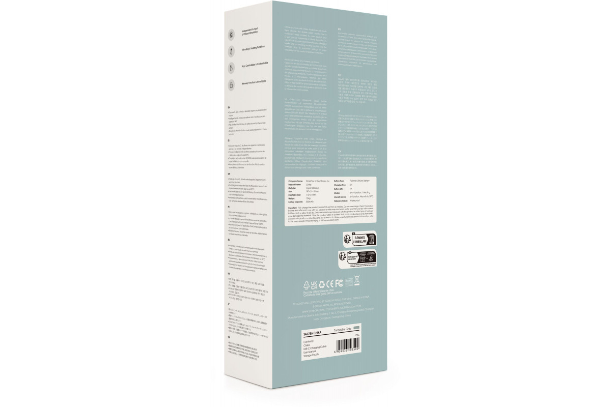 Chika имеет мягкую головку, которая прижимается к точке G, где бы она ни была, и независимый стимулятор клитора, все они изготовлены из мягкого жидкого силикона. Попробуйте вибрацию в 5 режимах, 5 уровнях интенсивности (25 вариантов и больше) и бонусном интеллектуальном режиме, который имитирует ритм секса в течение 4 минут.