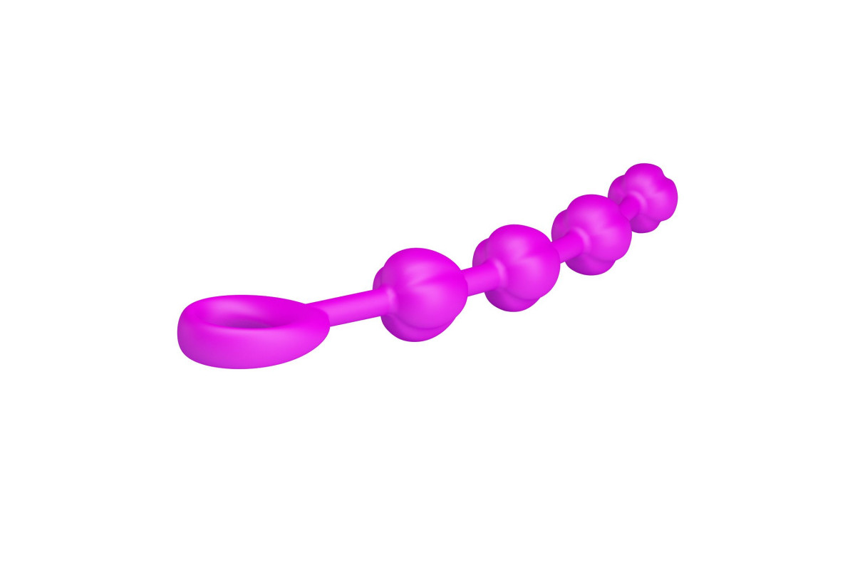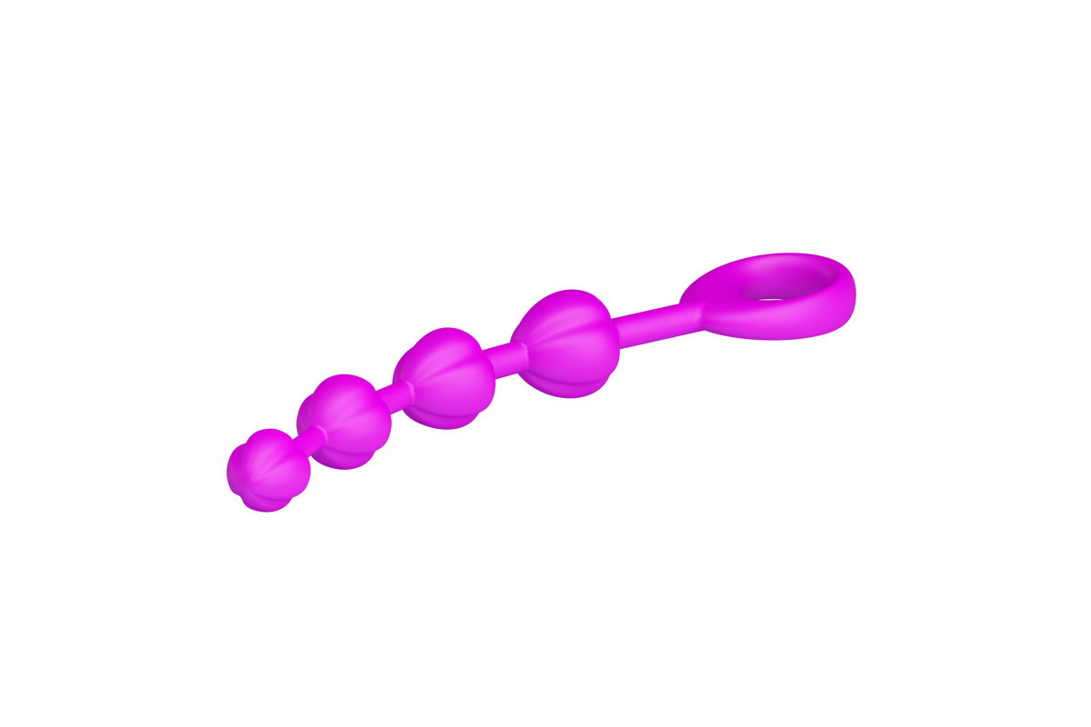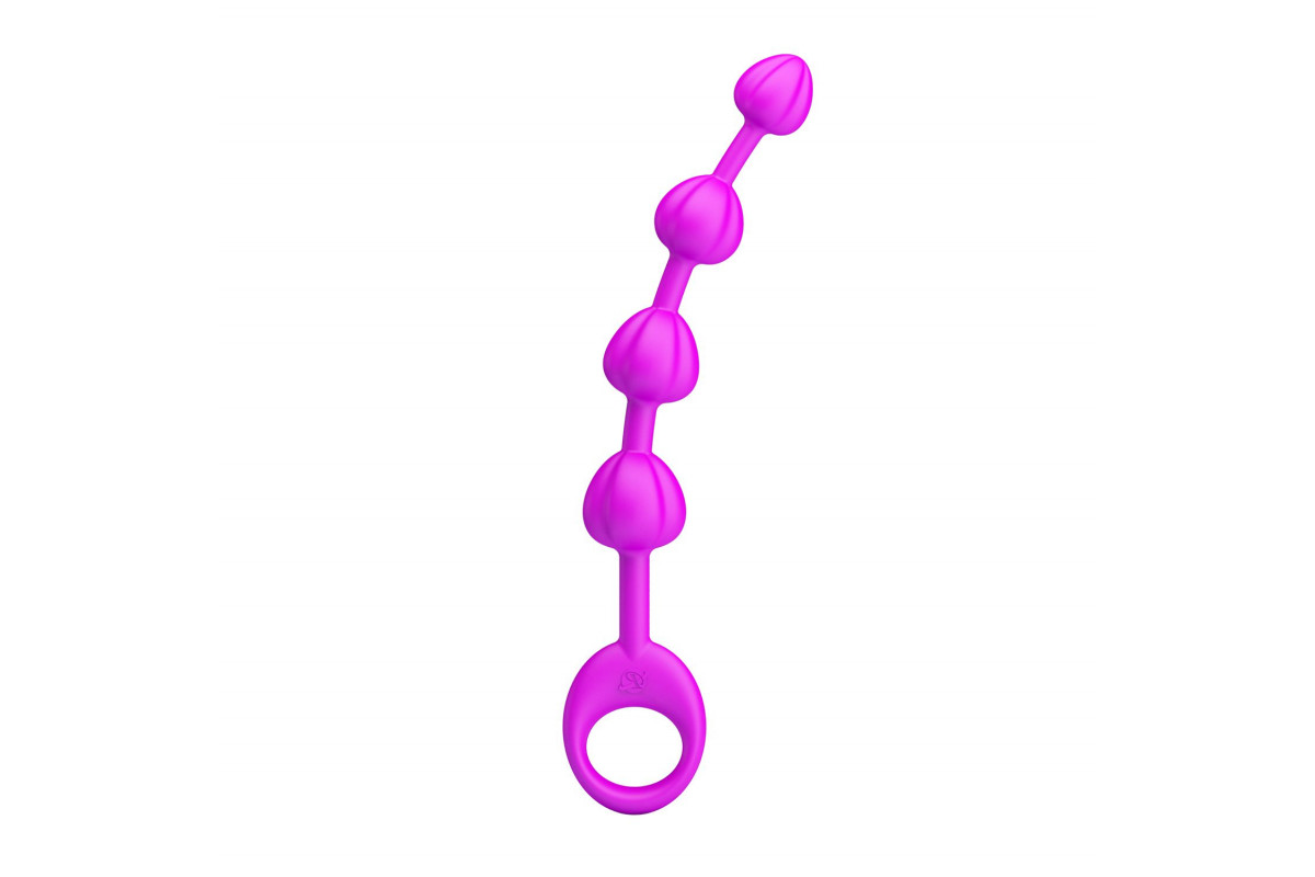 Силиконовая цепочка состоит из бусин разных размеров, что позволяет безболезненно проникать в область ануса. В ее основании находится удобное колечко, с помощью которого можно контролировать глубину проникновения игрушки. Минимальный диаметр звена - 1,7 см.
