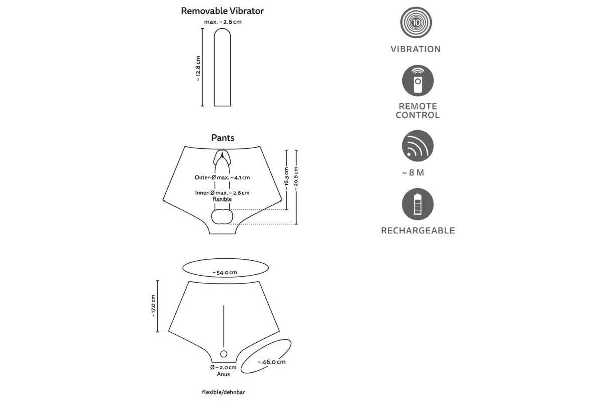 Какие точные размеры у товара Силиконовые трусы с вибрирующим пенисом и кому он подойдёт?